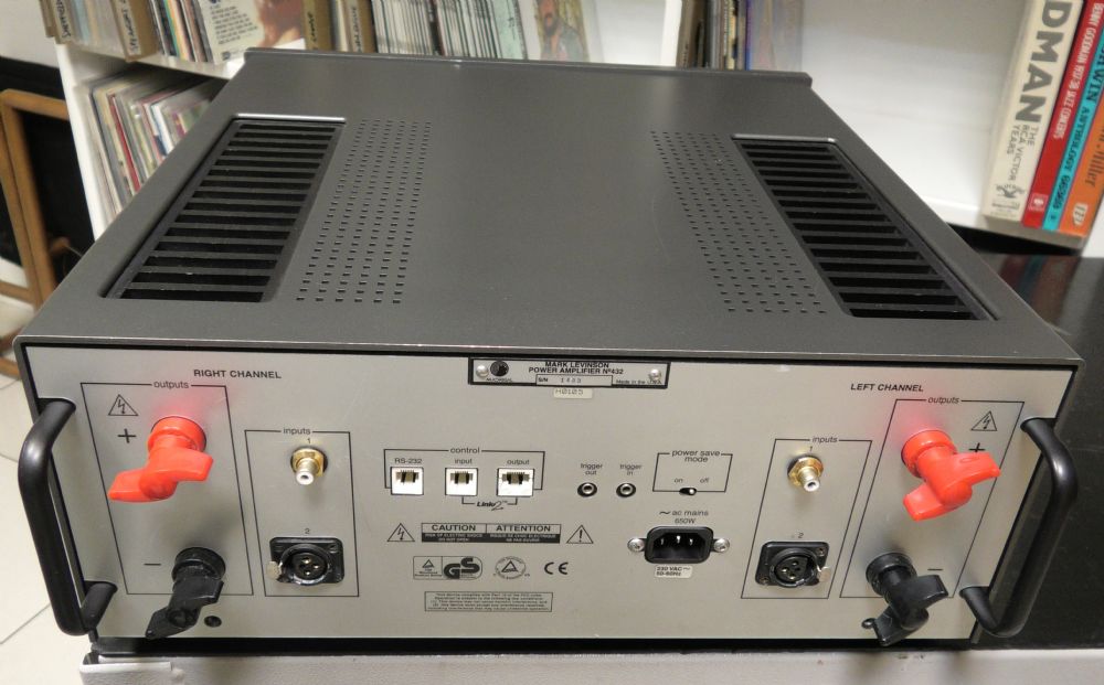 Il Mark Levinson 432 è una macchina progettata con grande attenzione e cura, con una architettura interna ordinata dove tutto lo spazio interno è efficacemente occupato. Eroga una potenza di 400 watt rms per canale ad 8 ohm che raddoppiano a 4 ohm. Non presenta quasi alcun cablaggio: tutti i componenti interni sono saldati sulle schede PCB e dove necessario le connessioni sono realizzate tramite solide barre metalliche. I transistor di potenza che producono calore sono montati direttamente sui dissipatori e il loro comfort termico è garantito da sensori che spengono l'amplificatore prima che si surriscaldi, anche se questo fenomeno è assolutamente improbabile. I connettori per i diffusori sono un piacere da usare poiché Mark Levinson rimane fedele ai suoi dadi ad alette, che possiamo considerare, insieme a quelli utilizzati da Boulder, i migliori nel settore audio. Infine, ci sono due semplici maniglie sul retro che rendono possibile spostare i 52 kg del peso netto del No.432. Mark Levinson non sembra concentrarsi eccessivamente sulle basse frequenze. Tuttavia, ciò potrebbe non essere vero perché le frequenze più profonde ci sono eccome quando ci devono essere. Il bello del No.432 è che tuona solo quando una registrazione lo richiede. Ciò che non ci si aspetterebbe da un Levinson a stato solido è il modo in cui il No.432 tratta le alte frequenze che sono prive di qualsiasi artificio; i colpi sui piatti vengono riprodotti con un suono metallico scintillante con un loro decadimento naturale. L’autorevolezza del No.432 si basa sulla focalizzazione in immagini sonore che danno una presentazione molto convincente e coinvolgente. L'amplificatore non ha problemi a ricreare con precisione lo spazio del luogo di registrazione, compresi i deboli riflessi delle pareti di una cattedrale. Cerca di ricostruire l'atmosfera originale, nei cori ogni cantante ha occupa il proprio spazio con quella distinzione che porta alla magica esperienza di ascoltare voci in massa invece di ascoltare una miscela unificata, una sorta di "multivoce". La grande specificità dell'immagine è superba con la chitarra solista nel concerto di John Williams (Spanish Guitar Music ). Le corde delineate individualmente, le dita che toccano il manico della chitarra, i movimenti dello strumento nello spazio e le risonanze tonali prodotte dal corpo dello strumento sono in equilibrio, tutte presenti. In perfette condizioni tecniche, presente solo qualche leggero graffio poco visibile sullo chassis.