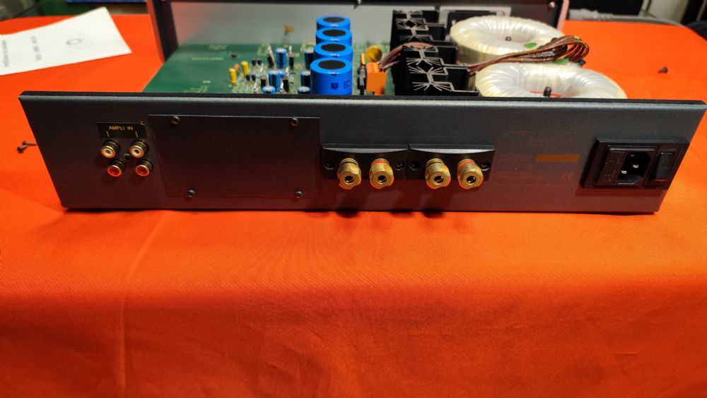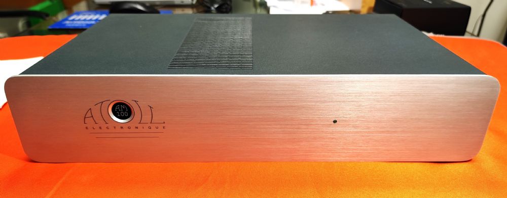 L'amplificatore finale stereo AM 100 ha una potenza di 100 watt per canale RMS a 8 ohm, un circuito completamente simmetrico con doppio trasformatore toroidale da 600 VA. E' in grado di erogare potenze di picco fino a 180 watt con una notevole velocità - lo slew rate è di 1,4 ms. La risposta in frequenza ha un range da 5 a 20.000 hz con una distorsione dello 0,07% a 30 watt. Dimensioni 440 x 90 x 255 mm - peso 10 kg. E' possibile eseguire una configurazione mono con notevole incremento della potenza. E' presente all'interno un selettore per la trasformazione in circuito bridge. Apparecchio in ottime condizioni con imballo ed istruzioni.