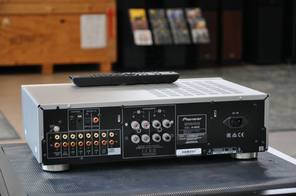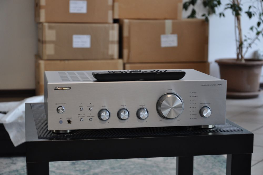 Pioneer A-40AE Amplificatore integrato da 60W con Direct Energy Design incorporato che crea un rapporto segnale/rumore elevato per un suono travolgente e realistico. Il condensatore principale determina la qualità audio ed è stato sviluppato in collaborazione con ELNA. Il logo Pioneer sulla custodia mostra che si tratta di un condensatore audio puro esclusivo. L’amplificatore A-40AE offre la funzione diretta bypassando gli altri circuiti tranne il volume, così da offrire un suono puro. L’Anti-Standing Wave Insulator ha una forma speciale senza lati paralleli all’interno, prevenendo così la risonanza; la localizzazione, il tono e la scala del suono saranno così molto più chiari aiutando anche il collegamento ad essere senza interruzioni e alla risposta in frequenza di essere migliorata. SCHEDA TECNICA Amplificatore integrato a 2 canali 60 W + 60 W (20 Hz-20 kHz, THD 0.5 %, 4 ohms, 2ch Driven) 30 W + 30 W (20 Hz-20 kHz, THD 0.4 %, 8 ohms, 2ch Driven) Risposta in frequenza: 10 Hz – 100 kHz +1 dB/-3 dB Connessioni: Analogue Audio Inputs (Gold Plated): PHONO (MM), CD/SACD, LINE 1, LINE 2, LINE 3, LINE 4, P.AMP DIRECT, Digital Audio Inputs: Optical, Coaxial (Gold Plated), Analogue Audio Output: LINE OUT (Gold Plated), Phones Output›SR In/Out, AC Inlet (Large Type) Dimensioni: 43,5 x 12,9 x 32,3 cm Peso: 8,2 kg Colore: Argento