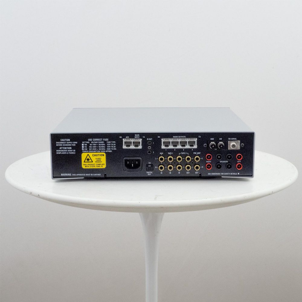 Descrizione: Ricevitore CD telecomandato con orologio, sezione sintonizzatore AM/FM, stadio di uscita MOSFET, tre ingressi di linea (Aux, Tape In, Tape In) e tre uscite di linea (Rec Out, Preamp Out, Cuffie). Funzioni programmabili dall'utente: Orologio, Sveglia, Timer (tutti con accensione/spegnimento automatico). Sezione sintonizzatore: 80 preset definibili dall'utente. Risoluzione di sintonizzazione: Modalità FM. Sezione lettore CD: laser a triplo raggio, conversione delta-sigma. Sezione amplificatore: Potenza di uscita: 75 Wpc su 4 ohm (15,75 dBW), rete nominale. Guadagno di tensione: 28,5 dB. Impedenza di uscita preamplificatore: 100 ohm (carichi superiori a 5 k ohm consigliati). Dimensioni: 12,5" (320 mm) di larghezza, 3,1" (80 mm) di altezza, 12,7" (325 mm) di profondità. Peso: 13,2 libbre (6 kg).
