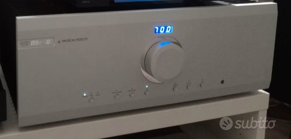 Amplificatore Integrato Musical Fidelity M6 si500, colore Silver, completo del suo imballo originale ed accessori (ancora immacolati e conservati nella loro confezione).