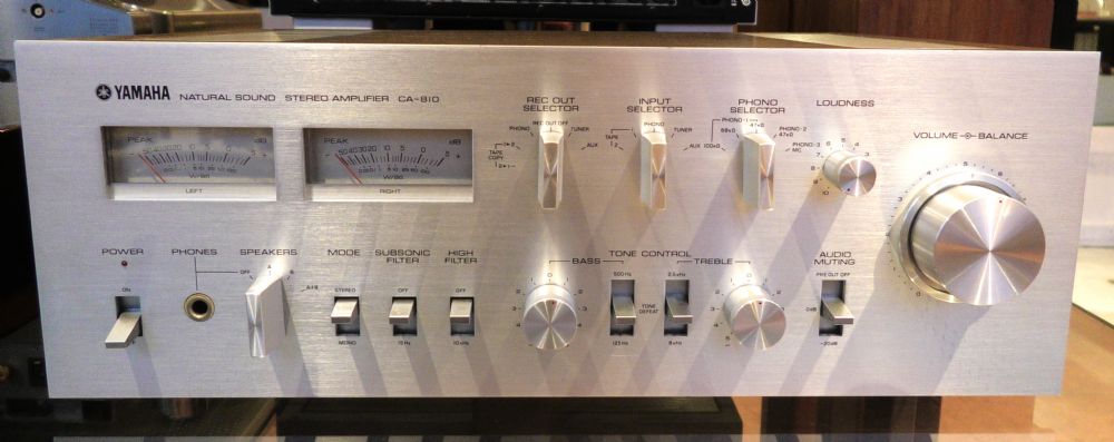Se amate l’hifi vintage non potete certo non considerare questo amplificatore Yamaha CA-810 che ha una caratteristica sorprendente: i due misuratori di livello sul pannello frontale, calibrati in decibel e in watt su 8 ohm, sono davvero utili. A differenza di altri amplificatori, i misuratori hanno un tempo di salita rapido e indicano effettivamente i livelli di picco e l'inizio della distorsione. Sono inoltre presenti una presa jack per cuffie e due connessioni per diffusori, con interruttore di selezione "off" per uno o entrambi i set di diffusori in parallelo. Per altri aspetti, la potenza dello Yamaha CA-810 è davvero notevole, con una distorsione armonica e di intermodulazione minima e una larghezza di banda molto ampia, con una distorsione di intermodulazione, al di sopra della banda di frequenza audio, incredibilmente buona. L’ingresso della testina fono magnetica è insolitamente performante con un rumore minimo. La selezione della sorgente d'ingresso avviene tramite due selettori rotativi, uno dei quali seleziona l'ingresso ausiliario, il sintonizzatore o uno dei due ingressi Tape. C’è poi un secondo selettore che seleziona tre ingressi per testine fonografiche. Due di questi sono per testine magnetiche e il terzo per una testina a bobina mobile con una sensibilità di 60 pV che offre buone prestazioni in termini di rumore. Una disposizione un po' strana è che questo selettore seleziona anche una scelta di tre impedenze d'ingresso per l'ingresso "phono 1", misurate come 98/67/49 kOhm. Questo amplificatore non è dotato di connessioni DIN, ma oltre agli ingressi è disponibile l'interfaccia tra il preamplificatore e l'amplificatore di potenza per il collegamento di equalizzatori, decoder, ecc. Presente un filtro passa-basso e un filtro passa-alto di buona progettazione, che ha il suo punto di attivazione di ±3 dB a 10 kHz con un tasso di attenuazione di 12 dB per ottava. L'effetto soggettivo di questo filtro suggerisce che la sua frequenza è impostata sul lato alto per essere efficace come filtro anti-scratch o per ridurre il rumore del nastro. I controlli dei toni alti e bassi offrono entrambi la possibilità di scegliere tra due frequenze di rotazione; i controlli stessi sono del tipo a undici posizioni e offrono una correzione fine in vista della gamma limitata. Infine c'è un controllo variabile del loudness che agisce come attenuatore e allo stesso tempo modifica la risposta in frequenza e, naturalmente, il controllo del volume che è concentrico con un buon controllo del bilanciamento. I tecnici Yamaha avevano prestato la massima attenzione al progetto per ottenere prestazioni musicali eccellenti, con una fedeltà musicale udibilmente superiore a quella di molte combinazioni separate di preamplificatore e amplificatore di potenza, dedicando la stessa attenzione a ogni sezione, compresi gli stadi di equalizzazione phono e di preamplificazione. Si sottolinea che l’apparecchio è appena stato accuratamente revisionato con cura dal laboratorio Gatti per cui possiamo tranquillamente riconoscere una garanzia AG di 3 mesi dall’acquisto. Anche le condizioni estetiche sono strepitose con chassis in legno senza alcun segno.