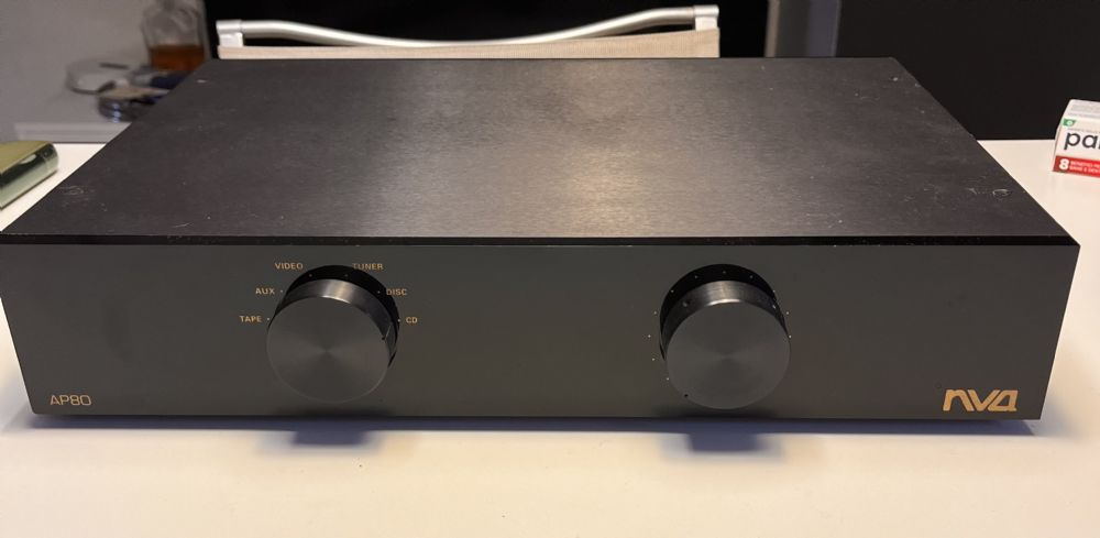 AP80 Integrato britannico di culto – Rarissimo, condizioni impeccabili L’NVA AP80è uno di quegli amplificatori che non compaiono spesso sul mercato. Non perché siano sconosciuti, ma perché chi li possiede difficilmente se ne separa. L’esemplare proposto è in condizioni estetiche e funzionali impeccabili, molto ben conservato. Una vera rarità, tanto più considerando che al momento risulta l’unico disponibile al mondo. Ad oggi esiste una riedizione moderna per 3000 sterline, segno di quanto questo progetto sia ancora oggi apprezzato e ricercato ma quello che vi propongo e’ il modello originale pensato da Richard Dunn.