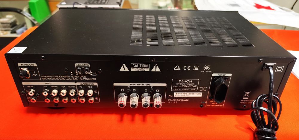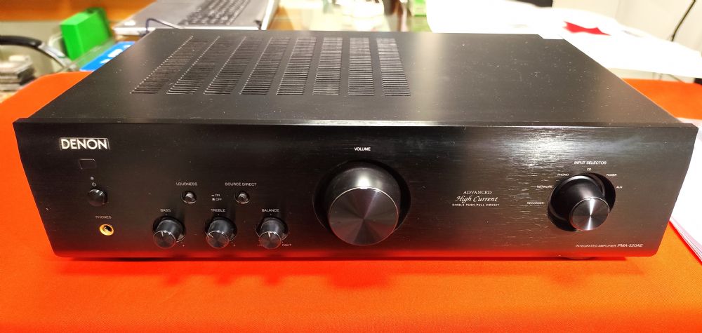 Il Denon PMA-720AE è un amplificatore integrato progettato per offrire una riproduzione sonora dettagliata e potente. Grazie alla tecnologia Push-Pull ad alta corrente e a un’alimentazione separata per audio e controllo, garantisce un suono puro e dinamico. La costruzione interna è pensata per ridurre al minimo le vibrazioni, migliorando ulteriormente la qualità audio. Ideale per gli appassionati di Hi-Fi, unisce performance elevate, design elegante e consumi contenuti. Offre il vantaggio di avere un ingrsso phono per testine MM. E' completo di telecomando, istruzioni, in ottime condizioni.