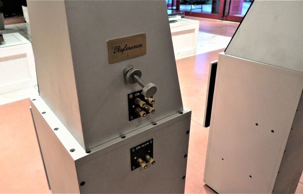 Gli YBA Gala Reference sono diffusori da stand a due vie con l'aggiunta di 2 moduli woofer separati. Costruzione eccellente con cabinet in alluminio, sono costruiti allo stato dell’arte. La forma irregolare e speculare, assolve al compito di rifasare i diffusori e di minimizzare le risonanze interne. Il wofer separato, svincolato dai satelliti, consente di scegliere la posizione migliore in ambiente per minimizzare le onde stazionarie a bassa frequenza. I moduli satellite permettono la regolazione per l’accordatura del mid- woofer al telaio al fine di dare più o meno rigidità all’insieme.