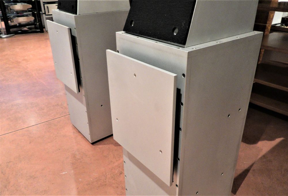 Cabinet solido e non risuonante. Costruiti in maniera incredibile in estrusi di alluminio e lastre di piombo fissati con viti in uso in aeronautica. Per ottenere i massimi risultati, richiedono elettroniche equilibrate su tutta la gamma e in grado di erogare potenze impulsive. Correttamente posizionate in ambiente, riescono a ricreare un corretto spazio sonoro.