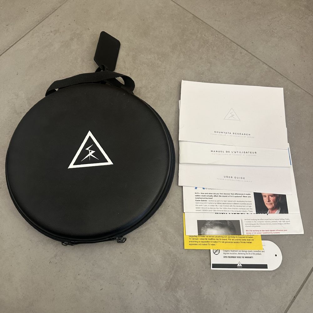 Cavo di alimentazione Shunyata Delta NR (Noise Reduction) Connettore C19, Spina schuko Eu, Lunghezza: mt 1,75. Con borsetta originale, certificato e documentazione. In condizioni eccellenti. Ottimo cavo ideale per cd,tuners,dacs,preamplificatori ed amplificatori.