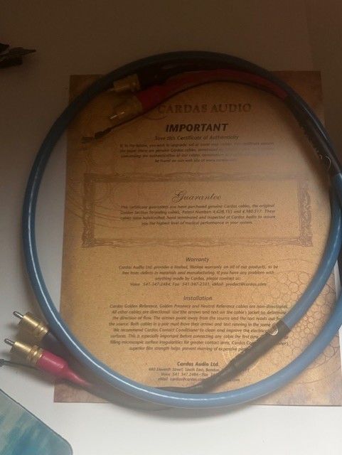 Vendo Cavo Cardas QUADlink phono 1.25mt RCA originale con certificato