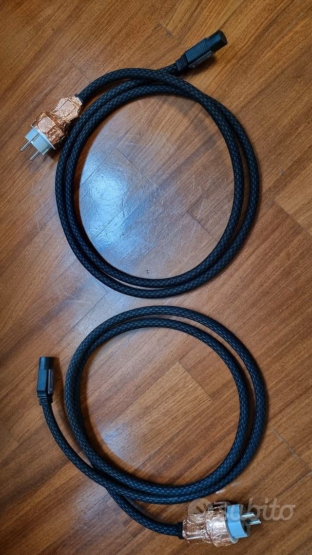 In vendita 2 cavi di alimentazione della Pangea. Lunghezza 2 metri. Sono terminati con connettori maschio a spina USA, ma come vedete in figura do anche adattatori per prese Schuko. Il prezzo indicato è per singolo cavo, non trattabile. Ideali per diffusori elettrostatici, io li usavo con le QUAD.