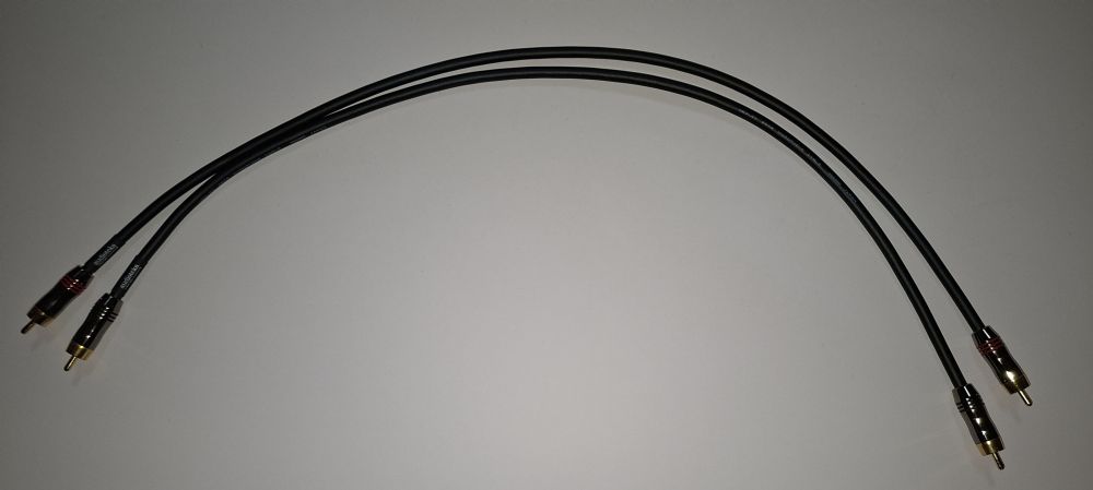 Vendo Mogami di segnale mod. 2549 realizzati da Audioteka lunghezza da pin a pin 65 cm e fatti terminare con gli RC 03 al posto dei plasticosi Rean. I cavi sono praticamente nuovi ed eccellenti. Vendo a 35 €, eventuale spedizione da concordare ma preferirei consegna a mano in zona.