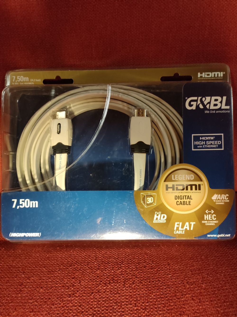 G&BL CAVO DIGITALE HDMI HIGH SPED 4K MT 7,50 OTTIMO STATO PERFETTAMENTE FUNZIONANTE. TIPO DI CAVO FLAT, OSSIA PIATTO PER AGEVOLAZIONI PASSAGGIO SOTTO MOBILI E TAPPETI - Supporta risoluzione 4K. - Connettori placcati oro. - Cavo piatto per una facile installazione.