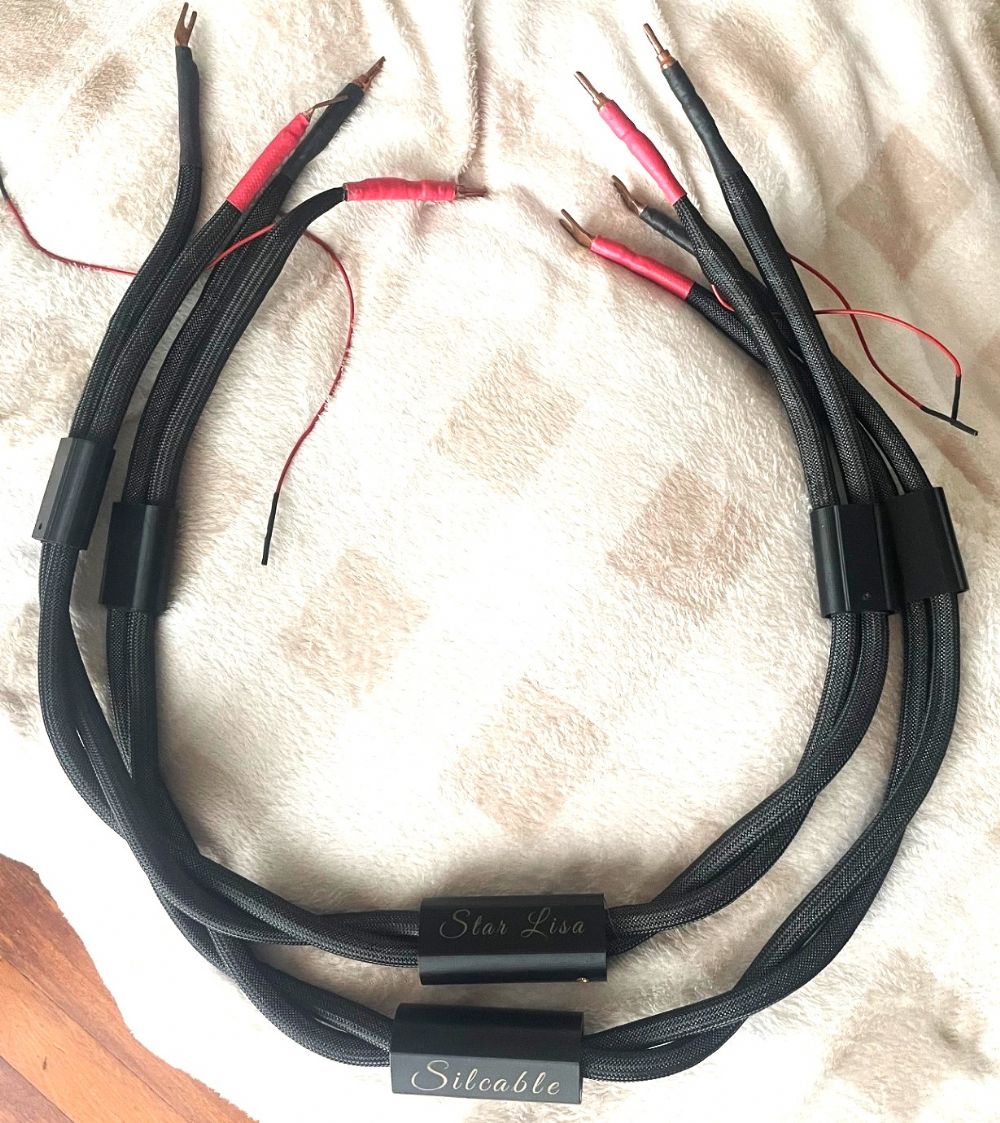 Vendo coppia di cavi potenza Silcable Star Lisa, lunghi 125 cm. con terminazioni da un lato forcella e dall’ altro banana, assemblati da Silcable per collegare i diffusori a finali monofonici, ultima versione con predisposizione Ground Station, top di gamma del marchio, suono neutro esteso e timbricamente molto coerente, perfetti in tutto, cedo per cambio progetto. Visitare il sito Silcable per ulteriori informazioni, per altre foto contattatemi. Spedisco, gradito ritiro Mi zona NE, posso valutare permute di mio interesse, fate proposte, cifra ragionevolmente trattabile, grazie