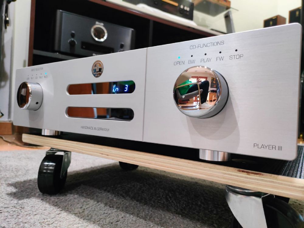 Il cuore del PLAYER III è un meccanismo di lettura a trazione progettato esclusivamente per applicazioni audio, con un vassoio in alluminio ottimizzato contro le risonanze, guidato da due barre metalliche. Il convertitore D/A integrato utilizza una tecnologia 32 bit / 384 kHz con upsampling, garanzia di un suono dettagliato, dinamico e naturale.