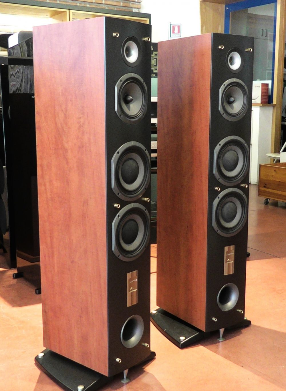 Le recensioni che sono state pubblicate per le Triangle Antal EX generalmente evidenziano un suono dinamico, vivace e dettagliato, con un palcoscenico sonoro ampio e profondo con bassi potenti e controllati, grazie ai suoi driver a cono in carta e all'innovativo tweeter a tromba. Il cabinet è piuttosto elegante e slanciato. Gli altoparlanti sono costruiti dalla stessa Triangle per ottenere il miglior connubio con il diffusore. • Qualità del suono: Vivace, incisivo e dinamicamente ricco in tutto lo spettro audio, con particolare attenzione alla velocità e al dettaglo. • Soundstage: Offrono un palcoscenico sonoro particolarmente ampio, chiaro e profondo con un'immagine estremamente solida. • Basse frequenze: Potenti, uniformi e piuttosto controllate. Progettazione del tweeter: È dotato di un esclusivo tweeter caricato a tromba con alloggiamento ventilato e con riflettore di fase per controllare le riflessioni interne e le radiazioni fuori asse, contribuendo alla chiarezza e alla riduzione della distorsione. • Midrange/Woofer: Utilizzano coni in polpa di cellulosa leggera per velocità e dinamica, abbinati a una sospensione plissettata, un design che aiuta anche a gestire la nitidezza degli acuti. • Compatibilità dell'amplificatore: L'elevata efficienza (circa 89 dB) e le eccellenti caratteristiche di carico consentono loro di funzionare bene con una vasta gamma di amplificatori, compresi gli amplificatori a valvole a bassa potenza. Caratteristiche tecniche: Sistema di cabinet Bass reflex Numero di vie 3 Dimensioni dei driver Tweeter a cupola 1 pollice / Midrange 6,3 pollici Bassi 6,3 pollici (x 2) Sensibilità (dB/W/m) 91 Gamma di frequenza (+/-3dB Hz-KHz) 40-20 Potenza continua (W) 120 Potenza di picco ripetitiva (W) 240 Impedenza nominale (ohm) 8 Impedenza minima (ohm) 3,4 Roll-off delle basse frequenze (Hz) 250 Roll-off delle alte frequenze (Hz) 2500 Dimensioni cabinet (A x L x P cm) 108 x 20 x 35 Dimensioni cabinet con base (A x L x P cm ) 108 x 37 x 38 Peso netto (kg) 22