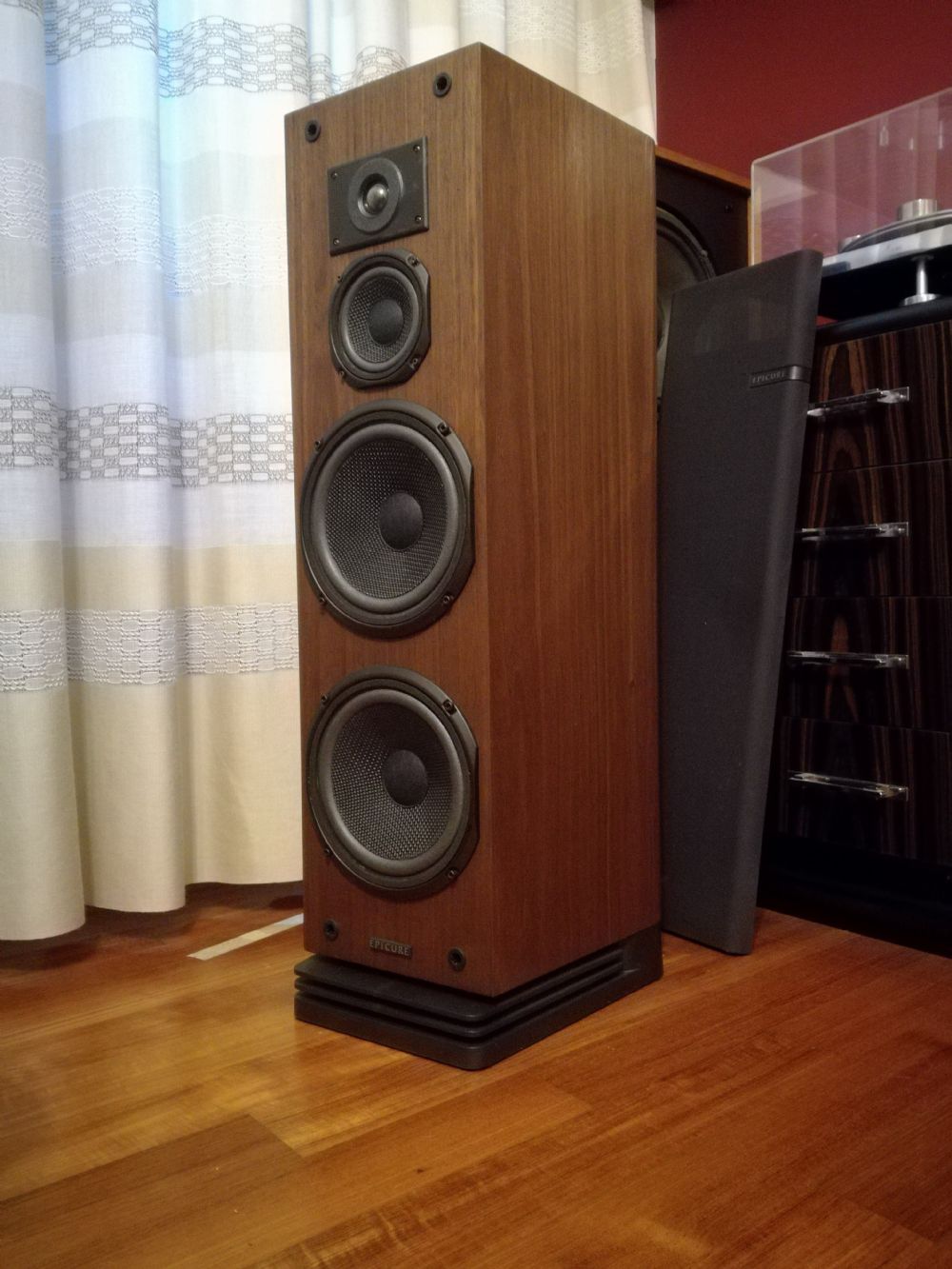 Diffusori Epicure model 2, casse a 3 vie con doppio woofer da 8" e midrange da 5". Condizioni eccellenti, tutti i woofer, compresi i medi, sono stati ribordati l'anno scorso. Casse dal suono corposo, basso profondo e veloce grazie all'utilizzo di 2 woofer da 8" che hanno la particolarità di essere uno in cassa chiusa ed uno in bass reflex (lo sfiato del reflex è verso il basso, il che rende anche più facile il collocamento in ambiente). Per qualsiasi informazioni contattatemi pure.