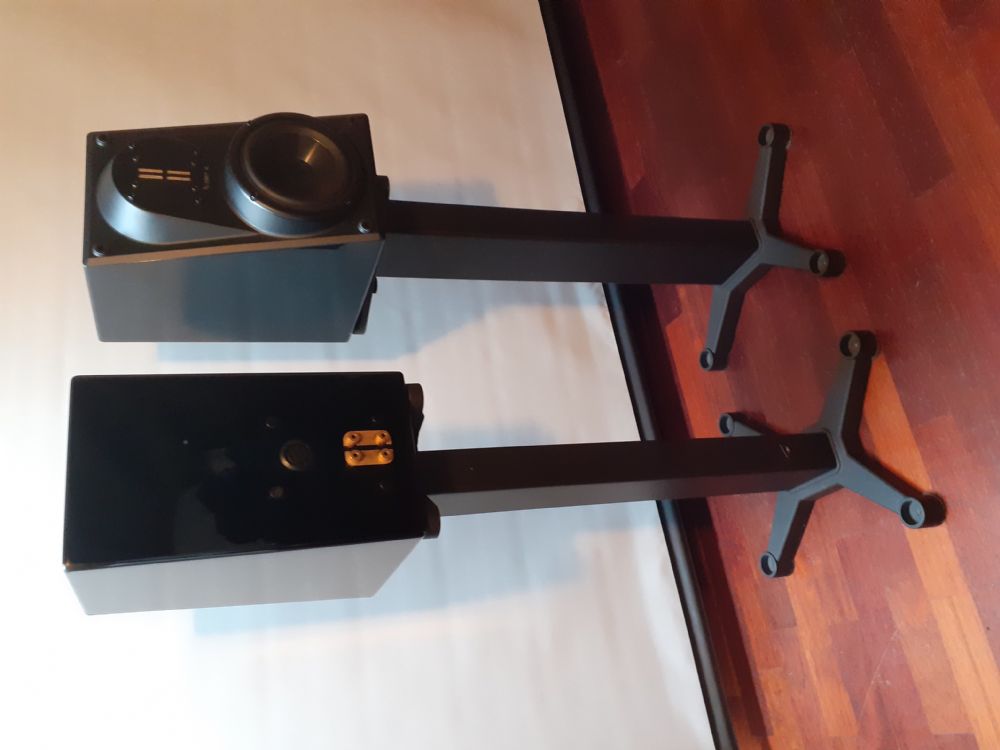 Coppia diffusori Infinity Modulus, 2vie, sospensione pneumatica, tweeter a nastro EmitK  2,125", Woofer 5,5", risposta frequenza 80/45 Khz, senno. 84db, impedenza 5omh, finitura  laccato pianoforte blk, dim. 30-181-27, stand originali
