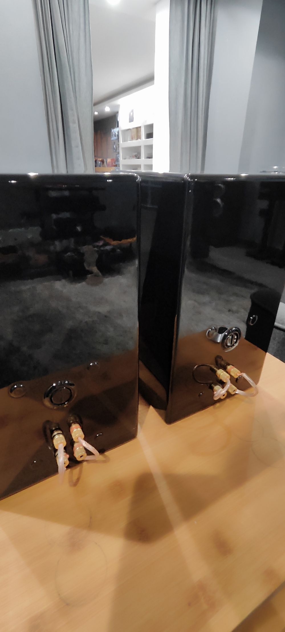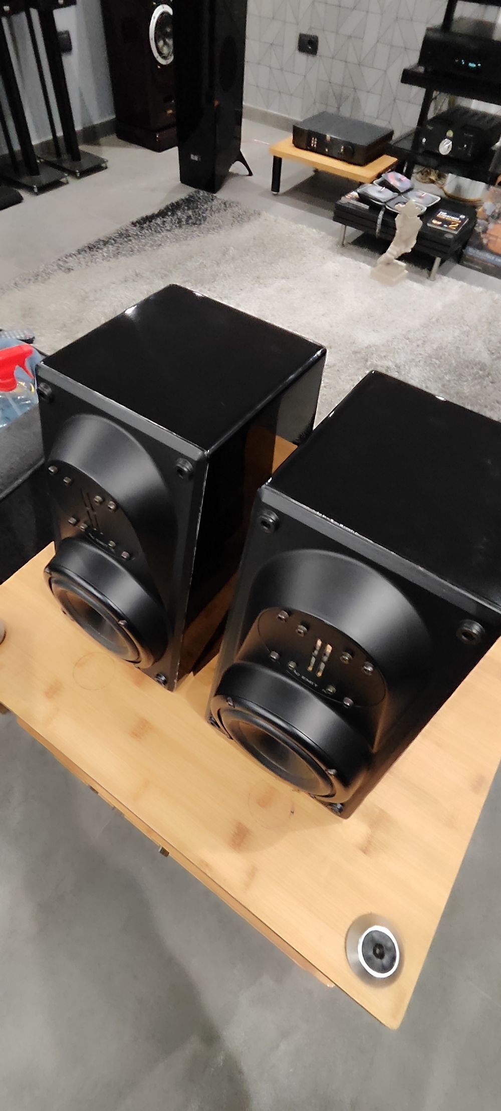 Coppia diffusori Infinity Modulus perfettamente funzionanti , esteticamente con qlc segno e sotto con dei fori per il fissaggio, le griglie hanno qlc innesto rotto da incollari ma non sono forate Diffusori book shelf 2 vie ,sospensione pneumatica ,84db sensibilita’,tweeter Emit -k Woofer 140mm ,impedenza 5 Ohm. Amplificatori da 50 a 200 W. Dimensioni : 30 a, 18 l, 27 p.