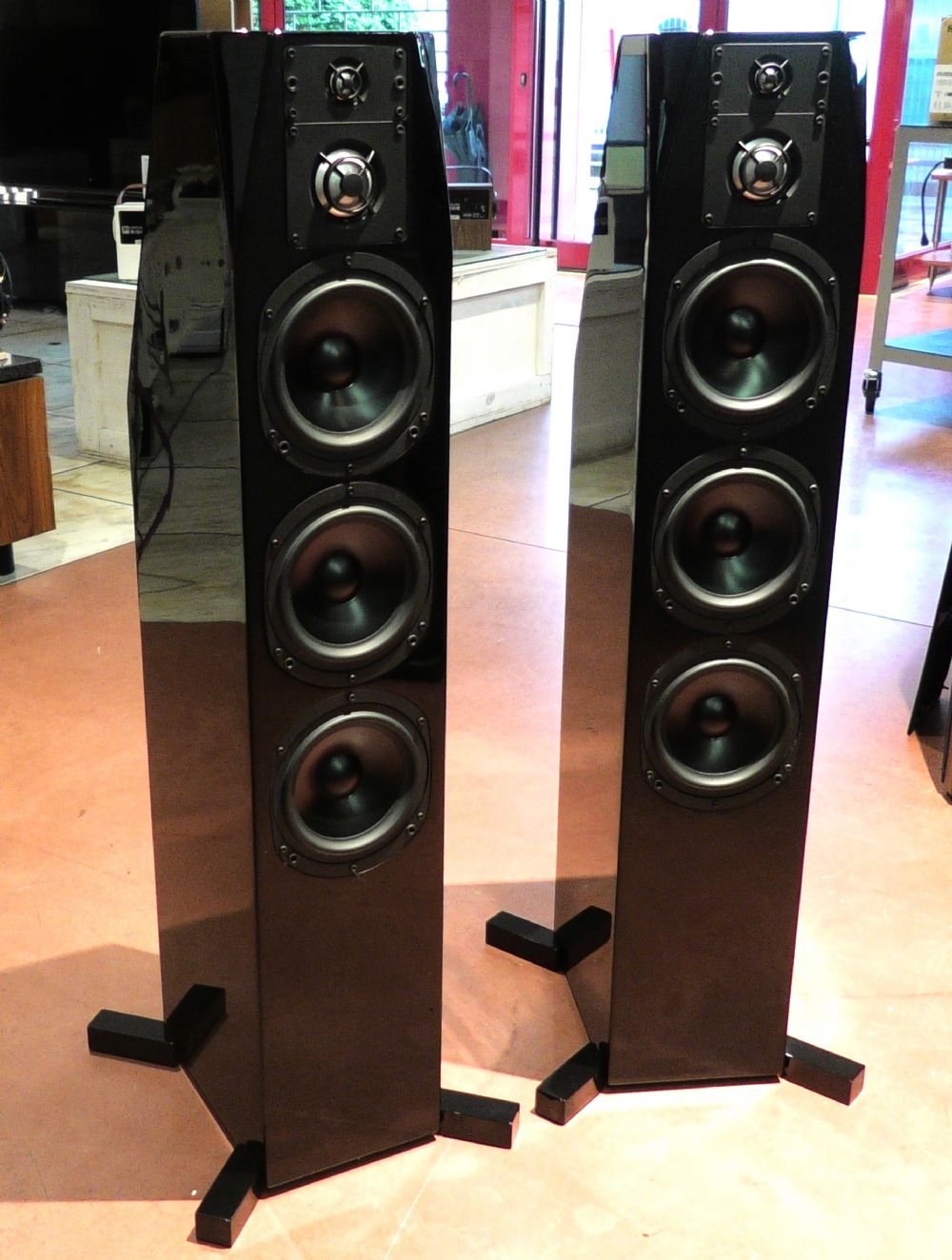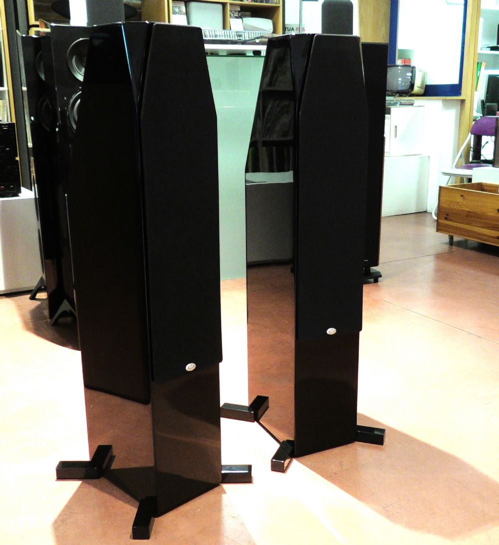Torre C4 Configurazione: Progetto a sospensione acustica a 4 vie Altoparlanti: 2 Coni in alluminio da 6,5" Gamma medio-bassa: Cono in alluminio da 6,5" Gamma media: Cupola in alluminio da 2" Tweeter: Cupola in alluminio da 1" Risposta in frequenza: 45Hz-20kHz (nella stanza) Sensibilità: 84 (2,83 v a 1 m) Impedenza: 8 ohm nominali, 5 ohm min. Potenza consigliata: 75-250 w/ch Dimensioni: 104 x 19 x 35 cm Peso: 46,6 libbre. Finitura: Nera lucido