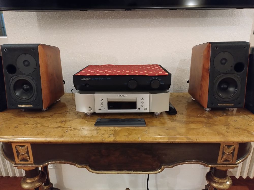 Vendo coppia di Sonus Faber Concertino ( 1a serie, considerata la migliore ), ottime condizioni come da foto. Ritelate teline ( 158 euro.... ), come nuove. Vedi caratteristiche tecniche in immagine allegata. nb. disponibili i ponticelli originali SF, che rimetto al loro posto. Con scatola originale ( possibile spedizione sicura ), e manuale S.F. Vendo a euro 720 o consegna diretta in zona Piemonte, Valsusa ( To ) [ RIBASSO ] a 670 euro compresa spedizione ( sconto ulteriore se consegna a mano ).