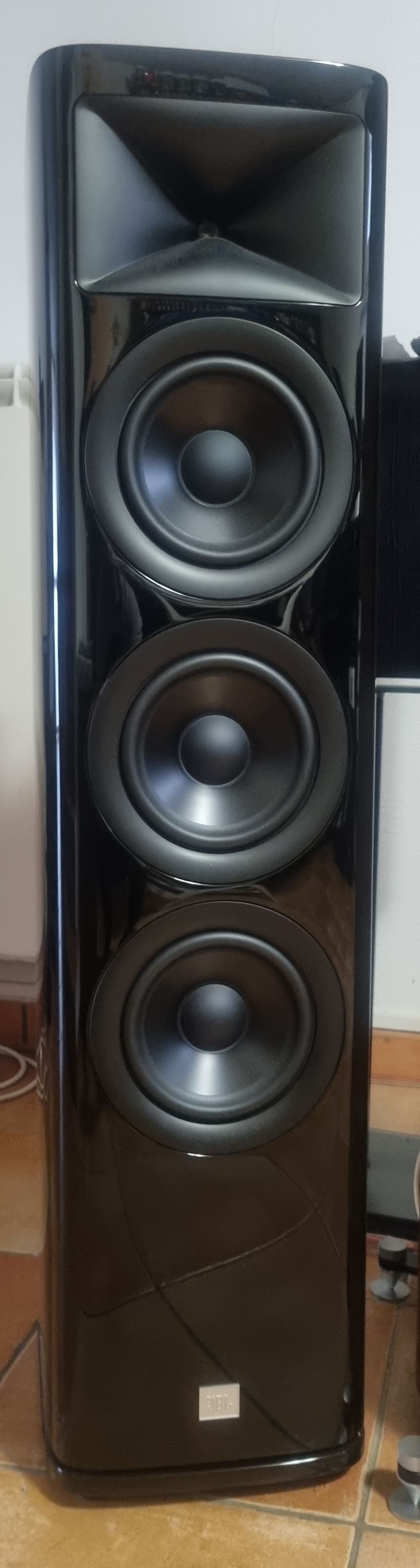 Diffusore da pavimento a 2,5 vie in bass reflex. Triplo woofer da 16,5cm con cono in alluminio e tweeter a compressione in Teonex da 2,5cm, con sistema High Definition Imaging a guida d'onda. Potenza da 20 a 250W. : 38Hz-30kHz. 4 Ohm. 90dB LxAxP 25,5x98,6x34,1cm. Peso 28 Kg. Imballi originali.