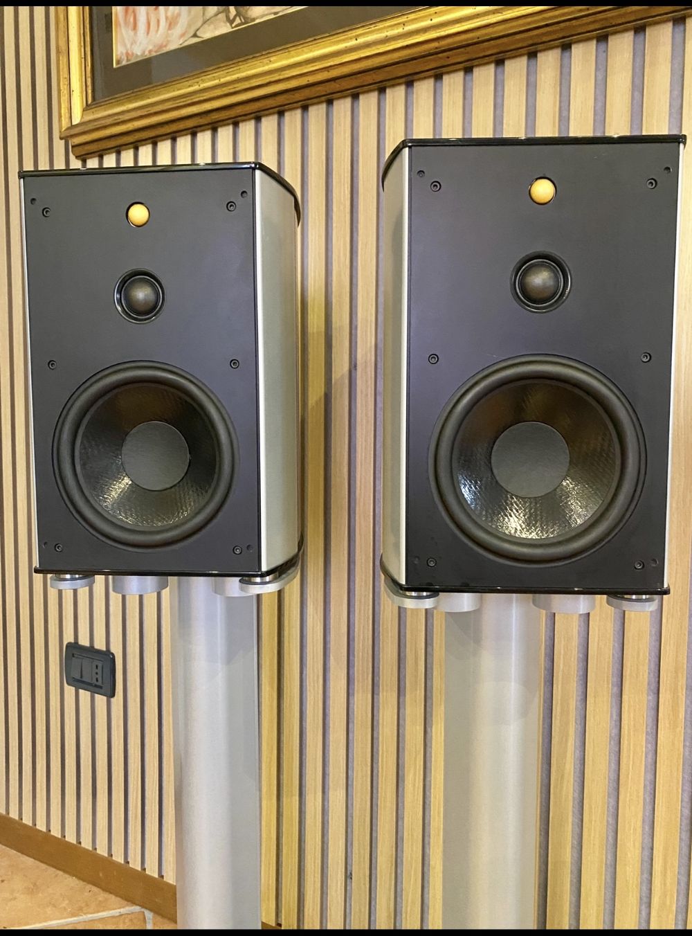 Come nuove,supertweeter a cupola in ceramica placcata in oro,tweeter in seta verniciata a mano di tipo “ultra lineare”,woofer in fibra di carbonio da 170.Cabinet e stands in carbonio e doppia lega di acciaio, terminali biwiring placcati rodio. Possibile altre foto, ascolto a casa mia, spedizione.