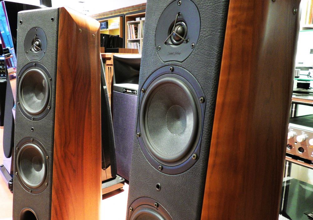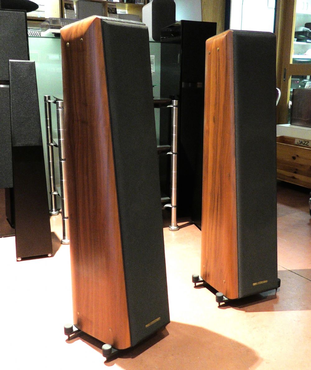 Questa è la versione rinnovata delle Grand Piano e l’unica vera somiglianza con la versione precedente è la forma generale, caratterizzata da una base piatta, fondo e fasce perpendicolari e un frontale leggermente inclinato all'indietro, il tutto rivestito in similpelle nera, con fianchi in legno massello dolcemente arrotondati. L’obbiettivo del costruttore era quello di migliorare la trasparenza della gamma media. Il risultato è stato pienamente ottenuto. Il GP Home è un diffusore con progetto a 2 vie e mezzo, con una unità mid/woofer ed un tweeter integrate da un'unità woofer che esce delicatamente dal circuito intorno ai 200 Hz e che lavora in combinazione ad un'ampia porta reflex posizionata sul pannello frontale. Il tweeter da 26 mm è di derivazione Vifa, e la frequenza di crossover superiore è di 3 kHz. I driver per i medio-bassi e i bassi sono unità da 180 mm con coni in fibra di vetro e cappucci antipolvere invertiti.Anche questi sono Vifa, ma sono stati ampiamente personalizzati da Sonus Faber. La forma affusolata tenderà naturalmente a disperdere alcune risonanze interne, oltre a favorire l'allineamento temporale sull'asse di ascolto. Il cabinet dei GP Home non è complesso come quello di alcuni dei modelli Sonus Faber più affermati, sebbene lo sia più della maggior parte dei diffusori simili di altri marchi. In questo caso, la struttura principale è realizzata in MDF, rinforzato e smorzato internamente, e poi rivestito in similpelle. Infine, i pannelli laterali in legno massello sono incollati con un adesivo smorzante e poi imbullonati al cabinet principale, con l'obiettivo di smorzare il rumore. E un diffusore dal timbro sostanzialmente neutro con bassi ben estesi per un diffusore da pavimento relativamente compatto. Il tweeter Sonus Faber è dolce e raffinato, e l'uscita sugli alti è più energica rispetto alla maggior parte dei diffusori italiani. I bassi sono buoni, davvero buoni. La linea di basso in "Rock you gentle" di Jennifer Warnes dall'album "The Hunter" ha un complesso schema ripetitivo, che spesso fa inciampare anche alcuni diffusori molto buoni, rendendoli goffi. I woofers dimostrano il valore del progetto Grand Piano, che dimostra un'agilità e un'accordatura che la maggior parte dei diffusori di analoga caratura non possiede. L'effetto è che il brano fluttua sulla linea di basso, che viene riprodotto esattamente come è stato concepito. Si tratta anche di un diffusore con un'ampia gamma dinamica di lavoro, che si manifesta in vari modi. Ha la capacità di riprodurre fino al minimo dettaglio, eppure la musica non suona mai arida o sfacciata. È improbabile trovare eccessiva brillantezza e anche in piccoli spazi è sufficiente orientare il diffusore in modo che l'asse del tweeter si intersechi leggermente dietro il punto di ascolto. Soprattutto, si tratta di un diffusore dal timbro morbido, dettagliato e dal timbro gradevole, di una raffinatezza insolita per questo prezzo. È notevolmente privo di artefatti da cassa armonica, ed è particolarmente efficace con gli strumenti acustici, ad esempio la musica da camera, dove la sua accurata tonalità gioca un ruolo fondamentale. Notevole è la riproduzione della voce umana. È un diffusore che sa davvero cantare ed incantare. In ottime condizioni ma senza imballo originale.