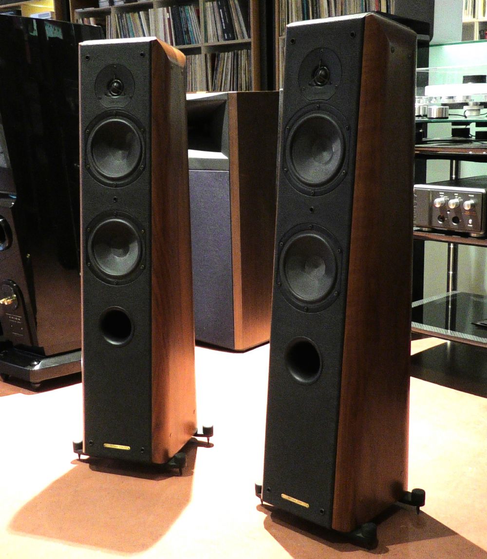 Tipo: 30 litri a due vie con design ABR con ventilazione anteriore, schermato magneticamente Tweeter: cupola in seta da 26 mm raffreddata con ferrofluido Driver per medi e bassi: cono multistrato in fibra di vetro da 180 mm Risposta in frequenza: 35 Hz - 20 kHz Sensibilità: 90 dB/2,83 V a 1 metro Impedenza nominale: 6 ohm Frequenze di crossover: 200 Hz, 3 kHz Potenza massima gestibile: 250 watt Dimensioni: 1080 mm x 235 mm x 290 mm (A x L x P) Peso: 25 kg ciascuno Accessori: con punte (in dotazione).