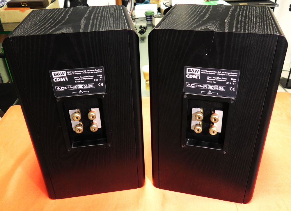 Votati "Diffusori dell'Anno" dai giornalisti europei, i Compact Domestic Monitor 1 (CDM 1) di B&W sono eleganti diffusori da stand ben rifiniti. L'aspetto più insolito del design riguarda il tweeter, montato su un incavo inclinato nella parte superiore del pannello frontale. Il cabinet è realizzato in MDF da ¾" ed è reso rigido da un rinforzo verticale al centro delle pareti laterali. La porta reflex, di quasi 2" di diametro e 6" di profondità, è situata sul pannello frontale immediatamente sotto il woofer ed è svasata per ridurre al minimo il rumore dell’aria. Questa unità per le alte frequenze è un'unità a cupola metallica derivata dal tweeter da 1" utilizzato nel classico design Matrix 801 di B&W. Il woofer da 6,5" presenta un cono giallo in Kevlar, il materiale sintetico utilizzato nei giubbotti antiproiettile. Il cono del woofer è inoltre circondato da una modanatura circolare in plastica per ridurre al minimo le riflessioni sonore. Il tweeter è ricoperto da una rete metallica nera, mentre il woofer e la porta sono dotati di una griglia ellittica realizzata in tessuto nero teso su un telaio di plastica minimale. Il bilanciamento tonale del CDM 1 è fondamentalmente neutro. Le voci vengono riprodotte con naturalezza. La gamma media è superbamente pulita e trasparente, con un bilanciamento la pone correttamente in avanti. Le alte frequenze sono sono pulite e prive di grana, e sembravano in perfetto equilibrio con le medie. Gli strumenti con una notevole energia in gamma alta mantengono la loro naturalezza. ll soundstage è sempre solido e stabile. In conclusione i B&W CDM1 sono dei diffusori che suonano meglio di quanto ci si possa aspettare dal loro prezzo. Utilizzati su una coppia di supporti per diffusori di qualità e pilotati da un'elettronica di buone prestazioni, offrono un livello di neutralità e trasparenza che difficilmente si riscontrano in diffusori della medesima categoria. Sono in buone - ottime condizioni con qualche segno superficiale poco visibile sul frontale di un diffusore.