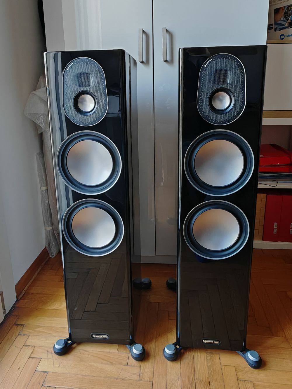 Vendo coppia di diffusori Monitor Audio Gold 300 5G colore nero pianolucido, PERFETTI usati 2 mesi, praticamente NUOVI. Acquisto 2025, usate 2 mesi in ambiente non fumatori, attualmente non utilizzati. Completi di imballi originali, accessori (punte, gommini, manuali) e documenti di acquisto.