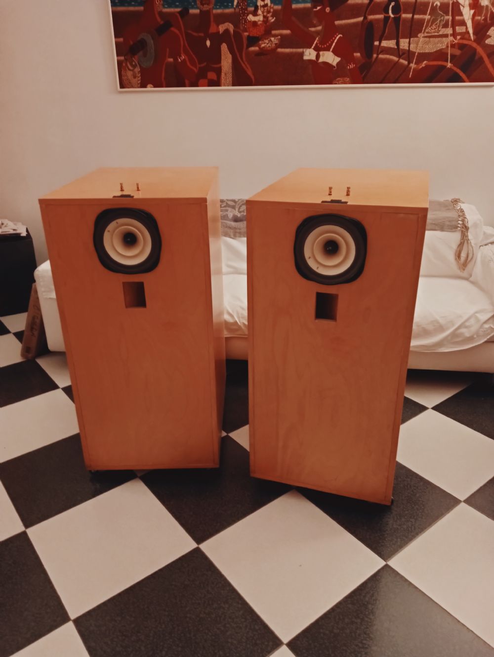 Splendida coppia di diffusori Lowther Side Vivace in bellissimao multistrato di betulla,fedele al progetto,con altoparlante Lowther 16 ohm PM2A..Perfetti con un suono magico,unico.