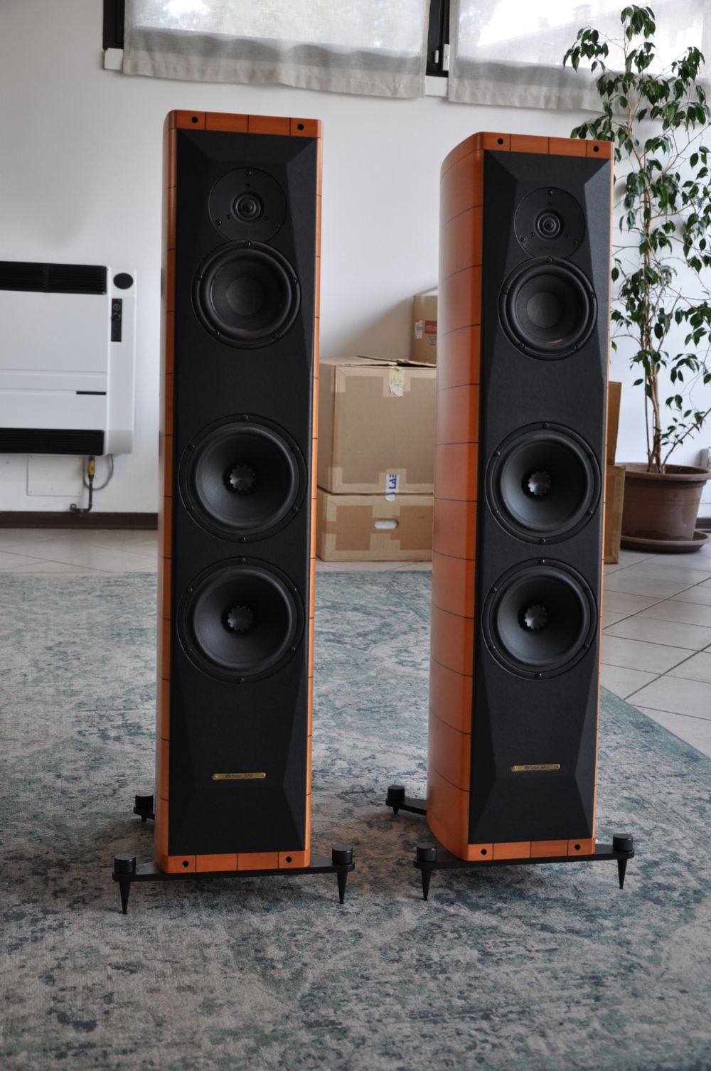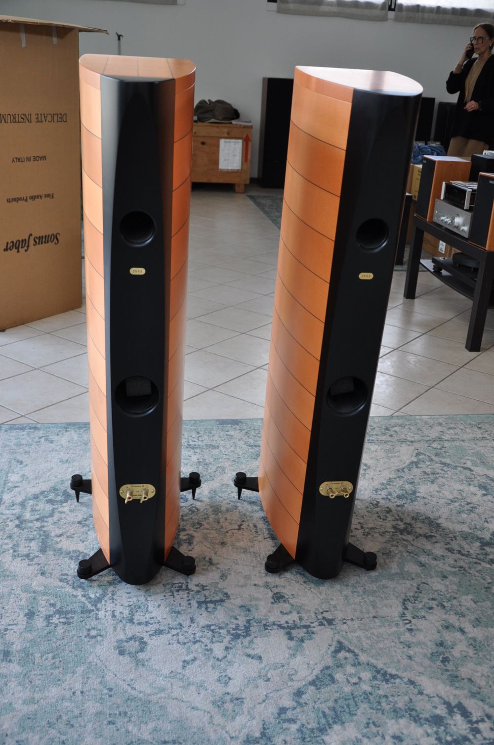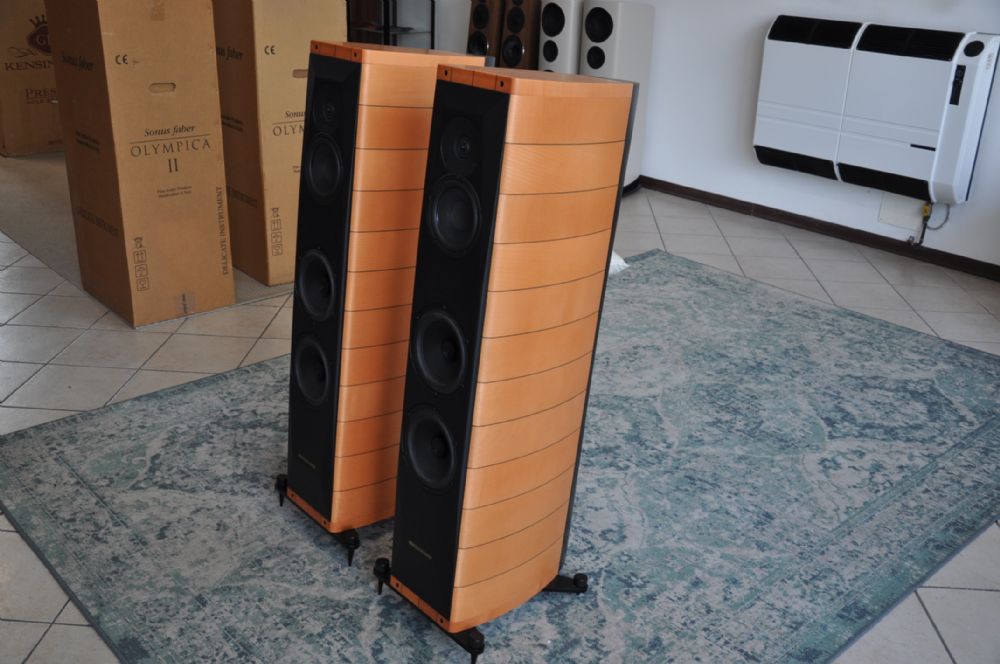I Sonus Faber Cremona M sono diffusori di prestigio che coniugano un design elegante con prestazioni audio eccellenti. Progettati per soddisfare gli audiofili più esigenti, offrono un suono caldo, dettagliato e dinamico grazie alla cura artigianale e all’innovazione tecnica. Specifiche Tecniche Sistema: Diffusori da pavimento a 3 vie, bass reflex Cabinet: Design a forma di liuto con struttura a sandwich in strati di legno selezionato e acero massiccio per il controllo ottimale delle risonanze; rinforzi interni per eliminare vibrazioni spurie e onde stazionarie Tweeter: Driver a radiatore ad anello da 25 mm ultra dinamico, per alte frequenze naturali e precise Midrange: Driver da 150 mm con cono in fibra di legno nero trattato per il controllo delle rotture, sistema di sospensione dinamica lineare, progettato con una camera acustica ventilata esclusiva Sonus Faber Woofer: Coni da 180 mm in lega di alluminio/magnesio per bassi potenti e lineari, con anticompressori coassiali per ridurre risonanze e distorsioni Cross-over: Design non risonante del secondo ordine, ottimizzato per le caratteristiche di fase, con punti di incrocio a 400 Hz e 2300 Hz Risposta in Frequenza: 40 Hz – 30.000 Hz, con porte di sintonizzazione per un’estensione fluida delle basse frequenze Sensibilità: 91 dB SPL (2,83 V/1m) Impedenza Nominale: 4 Ohm Gestione della Potenza: 50W – 250W senza distorsioni o clipping Finitura: Acero naturale con laccatura ecologica a media lucentezza Dimensioni: 1120 x 350 x 565 mm (H x L x P) Peso: 73 kg la coppia I Sonus Faber Cremona M sono stati controllati e testati accuratamente, e includono piastre sotto le punte per una stabilità ottimale. Un capolavoro di design italiano, questi diffusori offrono un’esperienza d’ascolto raffinata ed emozionante.