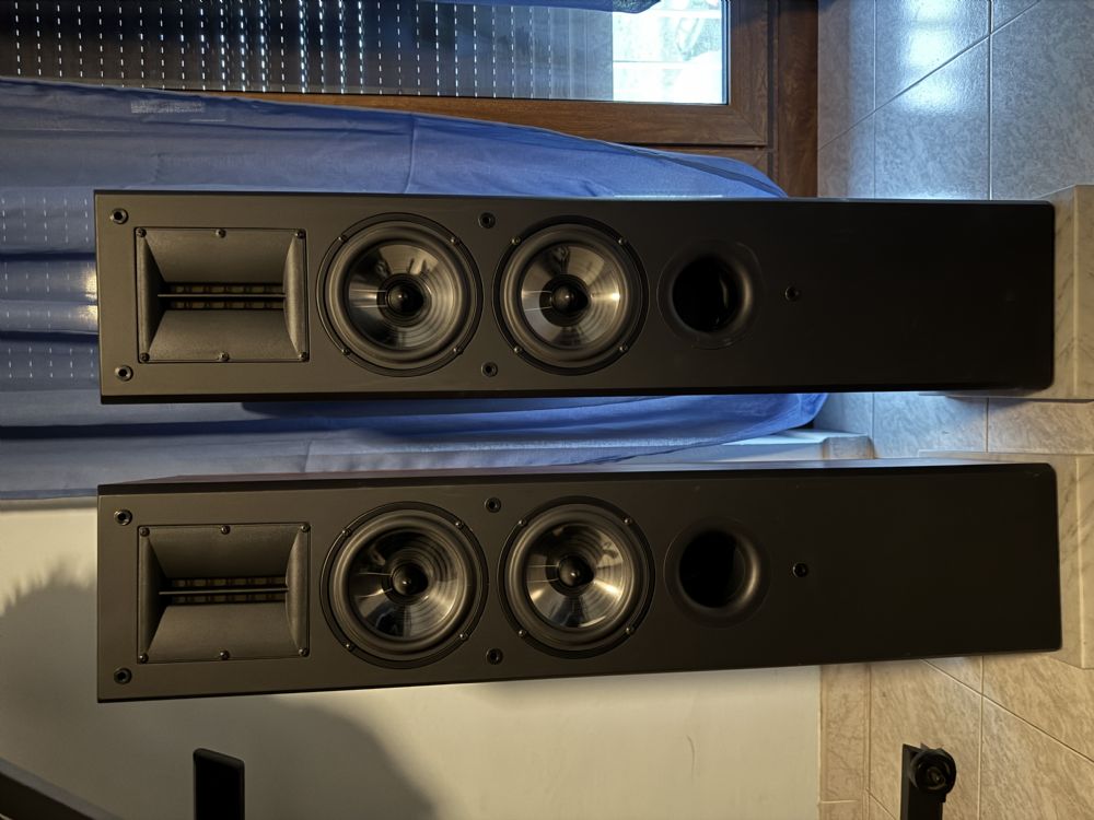 Diffusori a colonna, realizzati da un'azienda artigiana Milanese. Composte da 2 Mid-Woofer ATD ed un Tweeter a nastro anch'esso ATD. Case frontale MDF nero, fianchi massello color ciliegio. Base in marmo. Utilizzate pochissimo, tenute in modo eccellente. Non spedisco, previsto solo ritiro a mano.