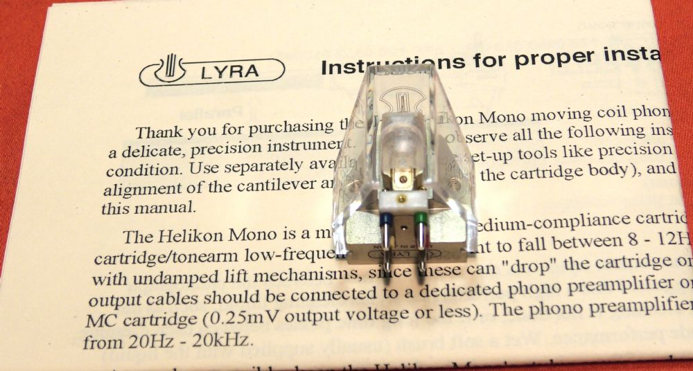 La testina Helikon Mono ha un modulo cantilever/bobina/stilo assolutamente unico ed il sistema elettrico è stato progettato e ottimizzato per la riproduzione mono. Con questa testina è possibile ridare una nuova vita a vecchie registrazioni mono in un modo così reale come non avete mai ascoltato. Poche ore di ascolto - con istruzioni ed imballo originale. Condizioni pari al nuovo. Specifiche Tipo: bobina mobile, bassa impedenza, bassa uscita, cedevolezza media Gamma di frequenza: da 10 Hz a 50 kHz Sistema a sbalzo: asta di boro solido con stilo a contatto con la linea (profilo 3x70 micrometri) Impedenza interna: 3 ohm Voltaggio in uscita: 0,25 mV Peso della cartuccia: 8,0 g Forza di tracciamento: da 1,6 a 1,75 g