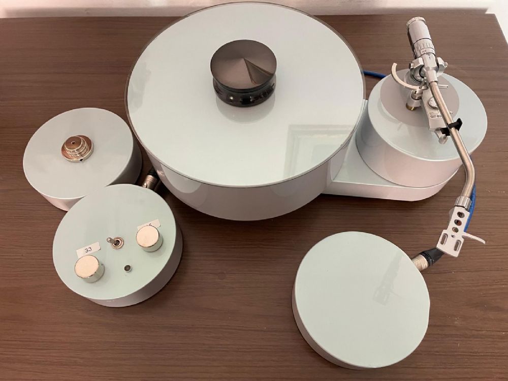 Può essere aggiornato allo stato completo dell'ultimo modello Reference. Viene venduto con un bellissimo braccio Acos Lustre GST 801 in acciao. SPECIFICHE del giradischi in vendita in questa inserzione. Trattasi di un modello prodotto intorno al 2010. Questo Glorioso giradischi ti permette di esplorare la bellezza sonora e la ricchezza cromatica della riproduzione analogica. Completamente silenzioso. Costruito per durare. La base del cuscinetto è realizzata in Widia. Diametro del perno del cuscinetto: 16 mm. Composto da componenti separati: alloggiamento motore, cuscinetto con piatto da 25 kg + disco +1 base del braccio (opzionale), piattaforma di supporto, alimentatore da 100.000 μF + trasformatore da 330 VA e unità di controllo. Verniciato RAL a piacere. Manopole e disco placcati in oro!!! Alimentatore separato. Velocità: 33 - 45 giri/min.