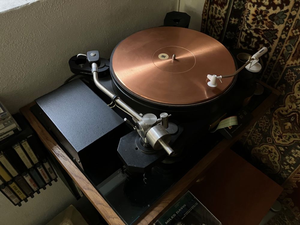 Completo di Alimentatore, copri-piatto CU180, stabilizzatore, una base braccio a scelta, tutti in gun metal, braccetto raccogli-polvere Nagaoka, calotta anti-polvere in plexi fumè (introvabile). Braccio e testina non incluse. Il miglior trazione diretta MS mai prodotto, con Quartz phase lock. Possibilità di conversione a cinghia con l'adozione del motore CY 2200, vedi foto 6 (non incluso e da calcolare a parte). Misura mm. 330x330xh134. Peso Kg. 13.1. Peso piatto Kg. 2,8 , momento di inerzia Kg.600. Misure cappa mm. 590x450xh220. Peso Kg. 1,040. La cappa, perfetta, copre anche l'alimentatore. Sopporta fino a 4 bracci contemporaneamente. Preferibile consegna diretta ma si può spedire, se richiesto, al costo o organizzato dal compratore. Imballo a mio carico.