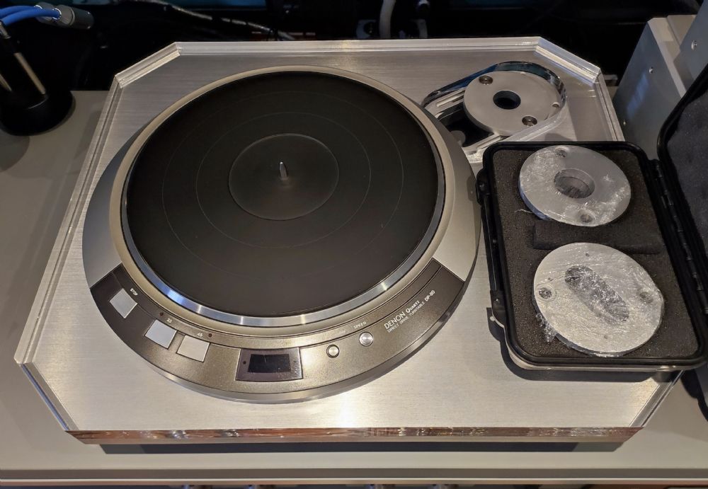 vendo in ottime condizioni giradischi Denon DP80 con base Aemilia. La base ha la possibilità di ospitare qualunque braccio in commercio da 9" a 12" e sono incluse le basette preforate per ogni tipologia di braccio. Preferisco la consegna a mano ma sono disponibile alla spedizione. Unico proprietaro.