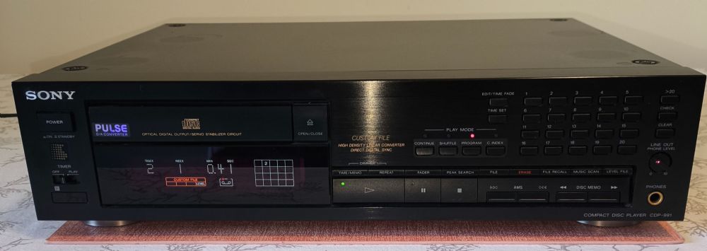 In vendita un classico lettore CD della casa giapponese degli anni '90. E' un prodotto di alto livello, più in alto si trova la serie ES (a ben altri costi) e che condivide la meccanica (non la costruzione) ed i convertitori D/A con X33ES, X55ES ecc Condizioni tecniche ed estetiche molto buone, frontale perfetto, qualche segno sul coperchio, tutto funziona come deve. 5kg di peso.