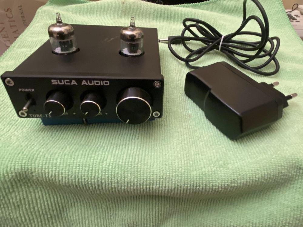 Mini pre amplificatore analogico valvolare Suca Audio T1. Valvole 2 x Jan 5654w. RCA linea in e out gold plated. Completo di alimentatore 12v. Ottimo per costituire mini impianto desktop con casse attive o con amplificatore analoga categoria o superiore. Usato pochissimo. Vendo per esubero componenti.