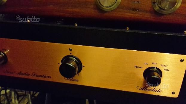 Pre valvolare New Audio Frontiers Absolute MKI, telaio unico. Pre di riferimento completo di stadio phono MM. Condizioni perfette, usato poco in secondo impianto. Prova dettagliata su AudioReview n. 243 / febbraio 2004 Valuto eventuali parziali permute.
