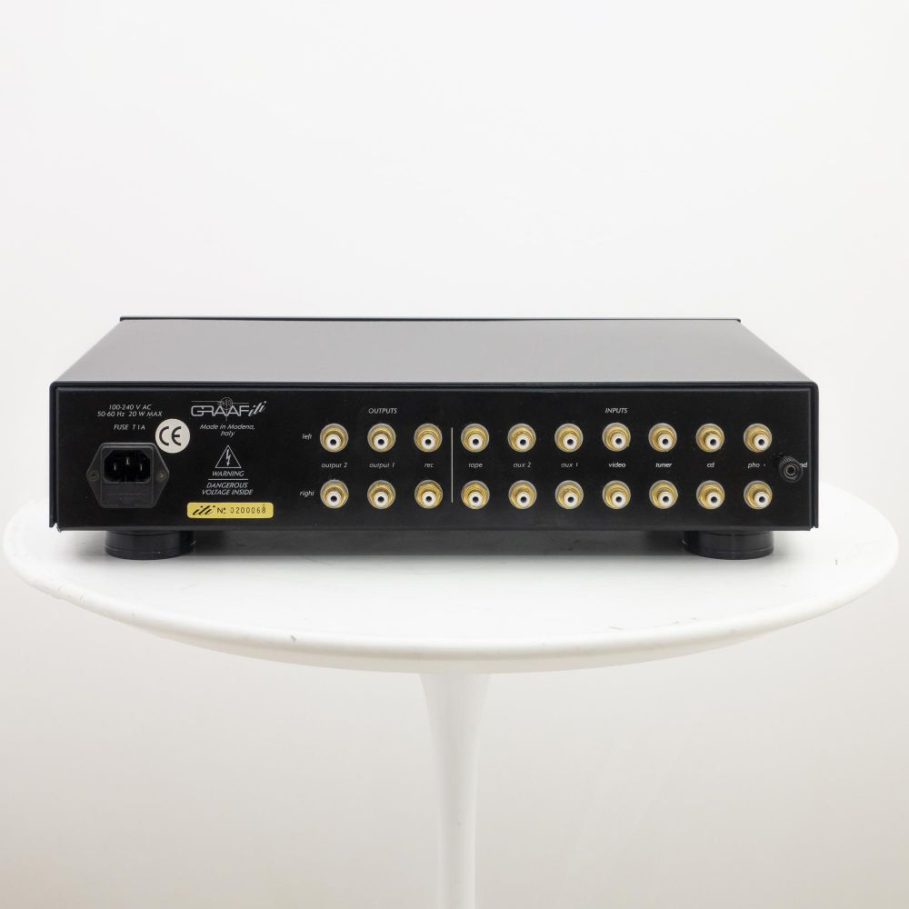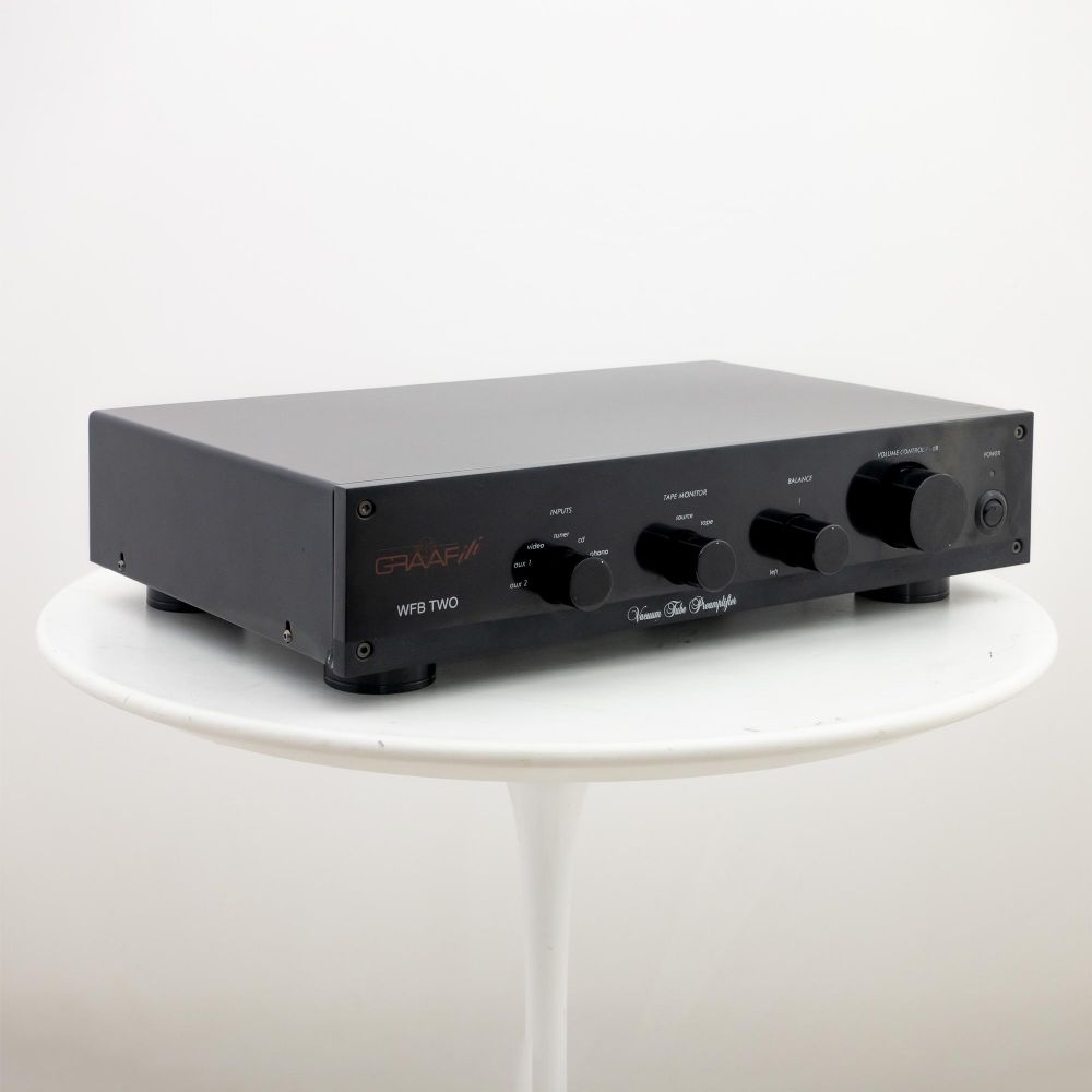 GRAAF- Preamplificatore a Valvole - GRAAFiti WFB TWO Preamplificatore della Nota casa Italiana GRAAF Il GRAAFiti WFB TWO è un preamplificatore linea e phono di eccellenti qualità, estremamente versatile grazie al suo circuito realizzato in totale assenza di controreazione. E’ dotato di sette ingressi (cinque linea, un phono, un tape monitor) e di tre uscite stereo (una tape rec, due uscite linea).