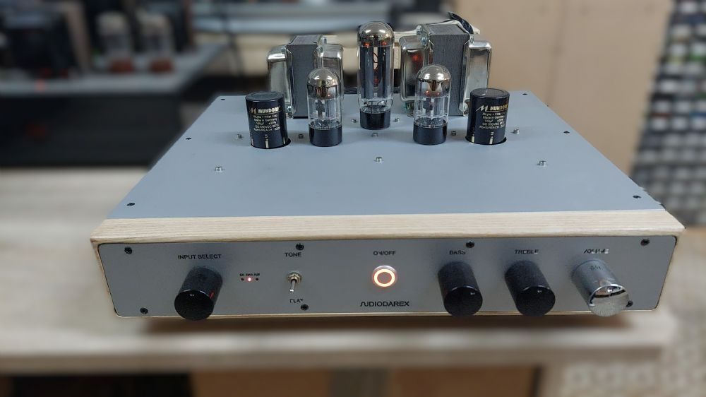 Pre Audiodarex modello srpp di 6SN7, alimentazione valvolare, controllo toni bassi e alti con possibilità di esclusione (flat). Apparecchio perfetto pari al nuovo, nessuna imperfezione tecnico-estetica, realizzazione del 2024. Costruito con materiali di alto livello, sound raffinato, caldo e piacevole per ascolti prolungati, si presta ad accoppiamenti con la stragrande maggioranza dei finali in commercio. Disponibile per qualsiasi prova. Spediamo ovunque con corriere espresso, imballo in legno ad alta resistenza.