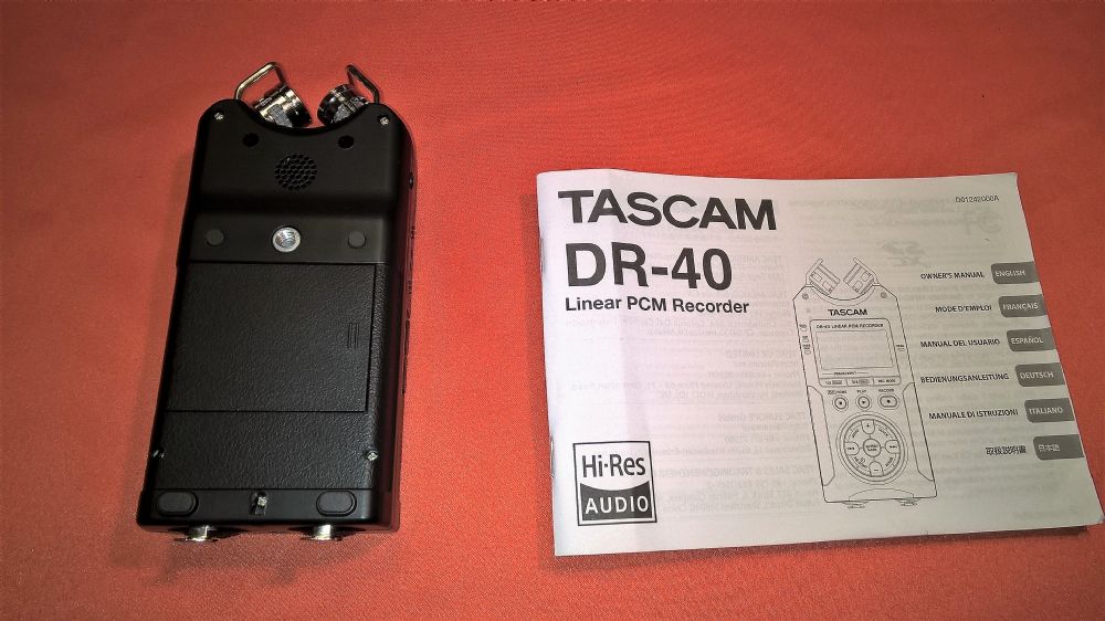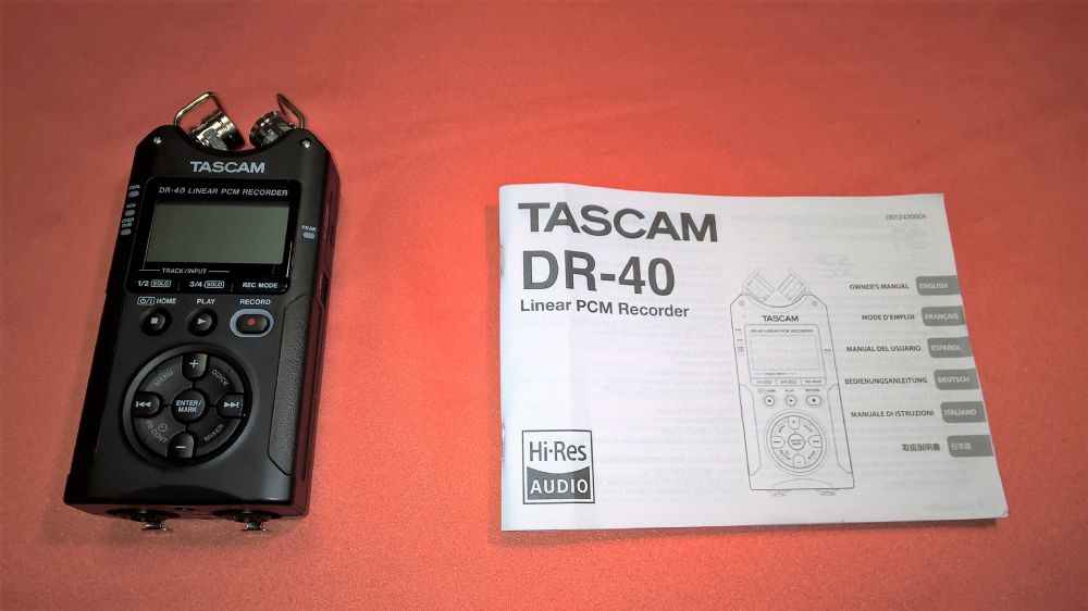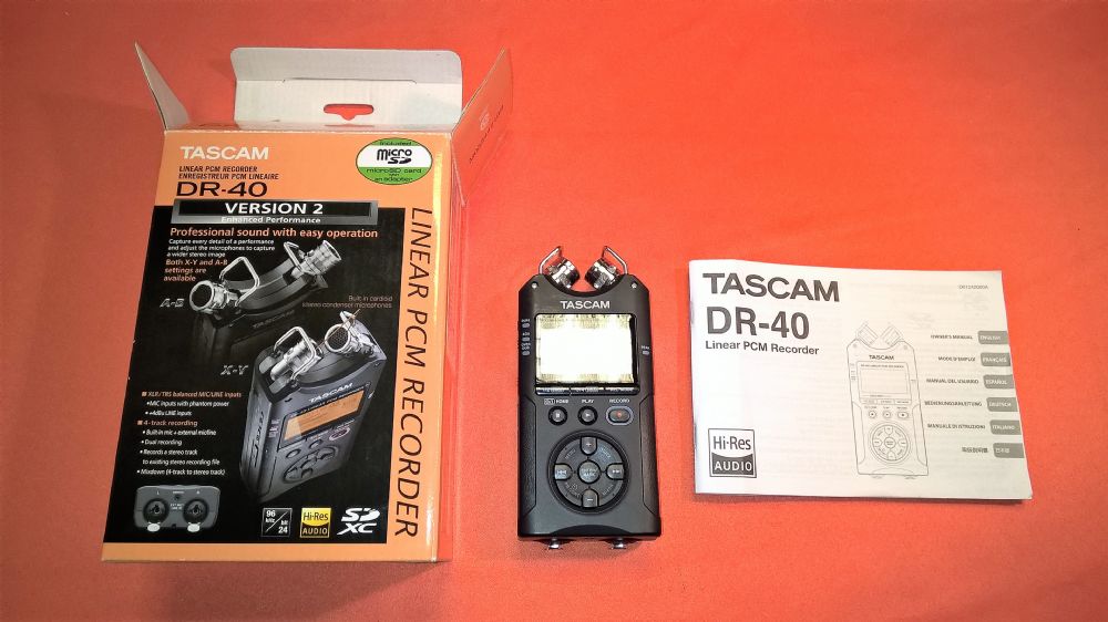 Il prodotto è provvisto anche di due ulteriori ingressi a cui potete collegare dei microfoni addizionali oppure l’uscita di un mixer.. E’ possibile installare il registratore su un treppiede agganciandolo al foro filettato standard presente sul retro dell’apparecchio. E dotato di scheda micro sd da 4 GB ma è possibile installare schede fino a 256 GB. Il Tascam DR-40 è dotato di molte funzionalità, come ad esempio la registrazione automatica, la quale entra in funzione nel momento in cui il dispositivo rileva che il volume dei suoni intorno ad esso supera una certa soglia. Alla luce delle ottime caratteristiche tecniche del Tascam DR-40, possiamo dire che è un ottimo prodotto ed è perfetto per chi ha bisogno di registrare concerti o performance dal vivo. Come si può notare il prodotto è praticamente nuovo con imballo ed istruzioni originali. Cavo usb in dotazione. Il prezzo di listino del Tascam DR40 è di 275 €.