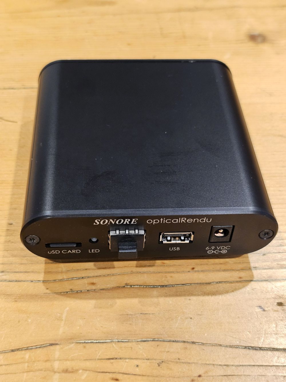 SONORE V2.9 (ultimo firmware) nero. L'opticalRendu è un network audio streamer (o “network bridge”) ad alte prestazioni. Porta di rete in fibra ottica che isola elettricamente il dispositivo dal resto della rete, eliminando disturbi elettrici e rumore (EMI/RFI) OpticalRendu: 400€ MiniTeddy: 200€