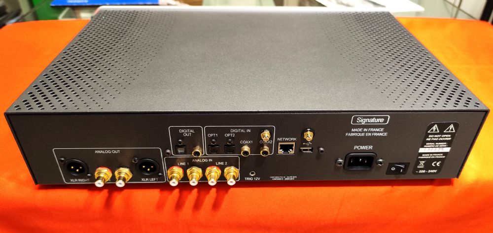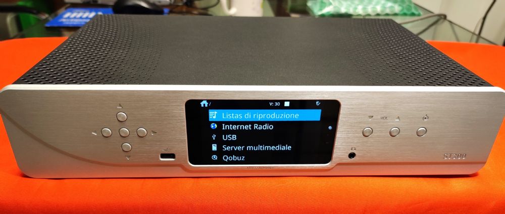 Dac-streamer di fascia elevata, tanto elevata che la sua sezione di conversione è direttamente derivata da quella del lettore CD top di gamma: CD 400 SE. Mantiene lo stesso chassis dell’ST 200 Signature ma all’interno troviamo molti miglioramenti: in particolare il doppio convertitore Burr Brown 24 bit / 192 KHz, uno per canale, stadi di uscita polarizzati in Classe A senza feedback, uscite XLR bilanciate. Il Dac decodifica anche i file DSD 64 e 128, mentre gli ingressi USB accettano memorie formattate FAT32, NTFS e EXT 2/3/4. Contiene un ottimo preamplificatore in classe A, con due ingressi analogici ed uscite bilanciate e sbilanciate, un convertitore di classe con due ingressi coassiali, due ottici, uno streamer con un app propria per poter gestire ogni tipo di file, ogni servizio internet, compresa la gestione Gapless (niente interruzioni durante la lettura di suite). Ha due ingressi usb di tipo A a cui poter collegare chiavette o hard disk con qualsiasi tipo di formattazione, display da 5” a led ed uscita cuffia. Descrizione: – Riproduzione di file audio in rete (compatibili DLNA e UPnP) con una connessione cablata o WiFi. – Visualizzazione di nomi, tag, risoluzioni e copertine degli album. – Sistema “Gapless” (nessuna interruzione tra i brani). – Possibilità di creare playlist. – Possibilità di controllo esterno (da Qobuz, Audirvana…) tramite il protocollo RTSP.