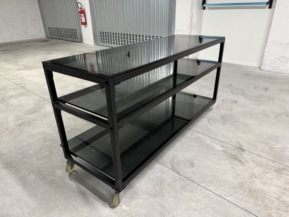 Vendo Mobile porta elettroniche. Estremamente robusto ed adatto anche a carichi pesanti. Dimensioni in cm largh 145, prof 50 ripiani alti e 60 ripiano basso, altezza cm 75 Ripiani in vetro laminato spessore 10 mm. Telaio in ferro. Considerato il peso non spedisco, ritiro a Rimini.