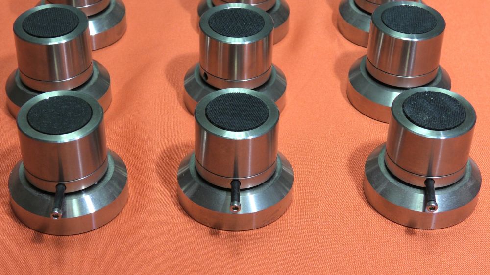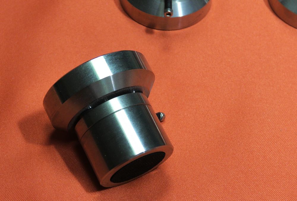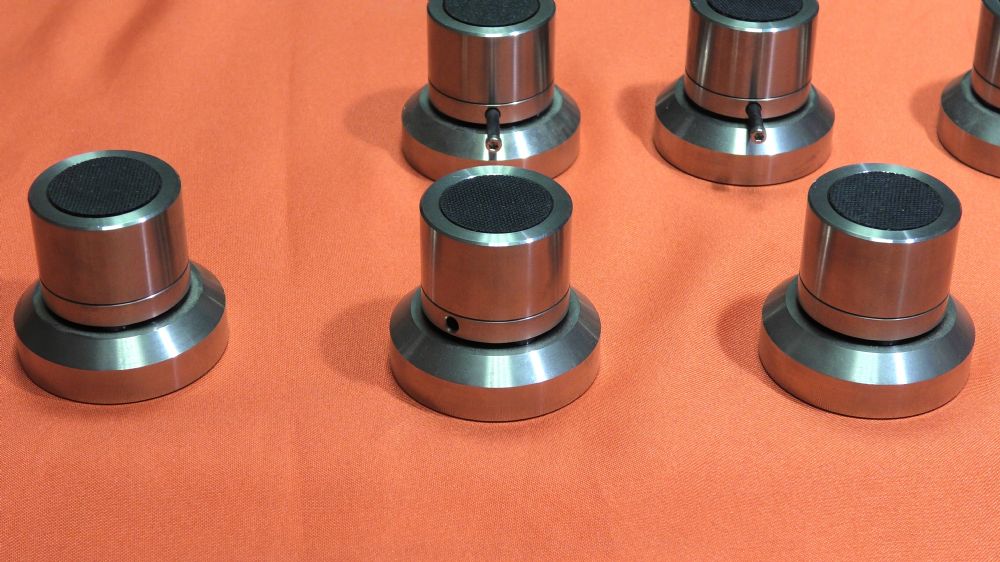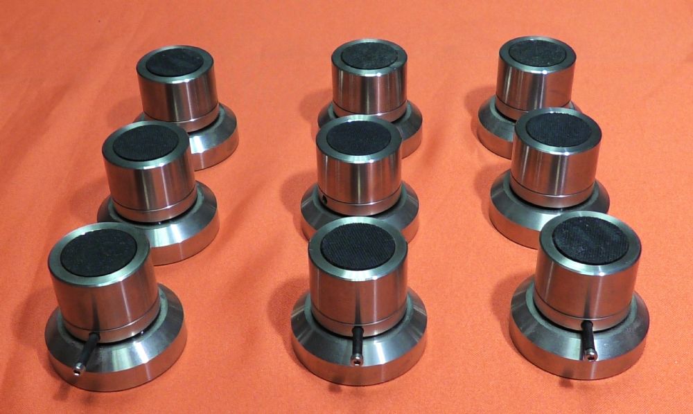 Piedini isolatori per elettroniche. Laddove le prestazioni e l’installazione giocano un ruolo importante, il modello Compact della linea Cerabase consente una gamma flessibile di applicazioni per ottenere prestazioni ottimali con la massima flessibilità possibile. Campo di applicazione ottimale: 20 – 150 kg di peso del dispositivo consigliato tra componenti audio, altoparlanti e rack Prezzo di listino: Set da 3 pezzi: 560 € Materiale: acciaio inossidabile di precisione, 3 sfere in ceramica ad alta tecnologia Altezza utile: 43 – 52 mm Dimensioni: Ø 35 mm (parte superiore), Ø 50 mm (parte inferiore) Capacità di carico: 500 kg (set di 4), 375 kg (set di 3) Non è disponibile l'imballo originale. Disponibili ancora 3 pezzi. Il prezzo indicato è per 3 pezzi. Sono in vendita blocchi da tre pezzi.