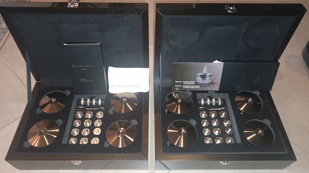IsoAcoustics Gaia Titan Rhea, set da 4+4 isolatori acustici antivibrazioni per due diffusori dal peso massimo sopportato di 190 kg. per diffusore. I bassi saranno più definiti, controllati, e la scena acustica si apre nelle tre dimensioni. Le vendo con tutti i loro accessori e imballi. Sono perfetti, addirittura sempre con la loro pellicola di protezione.