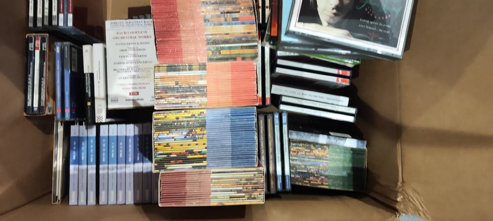Collezione di oltre 3000 tra cd e sacd , perfetti alcuni mai usati, artisti come bach, haydn, schubert, mozart,bethoveen e tanti altri, oltre 1000 di bach , collezione incredibile con cofanetti di gran valore e collezioni non + presenti sul mercato
