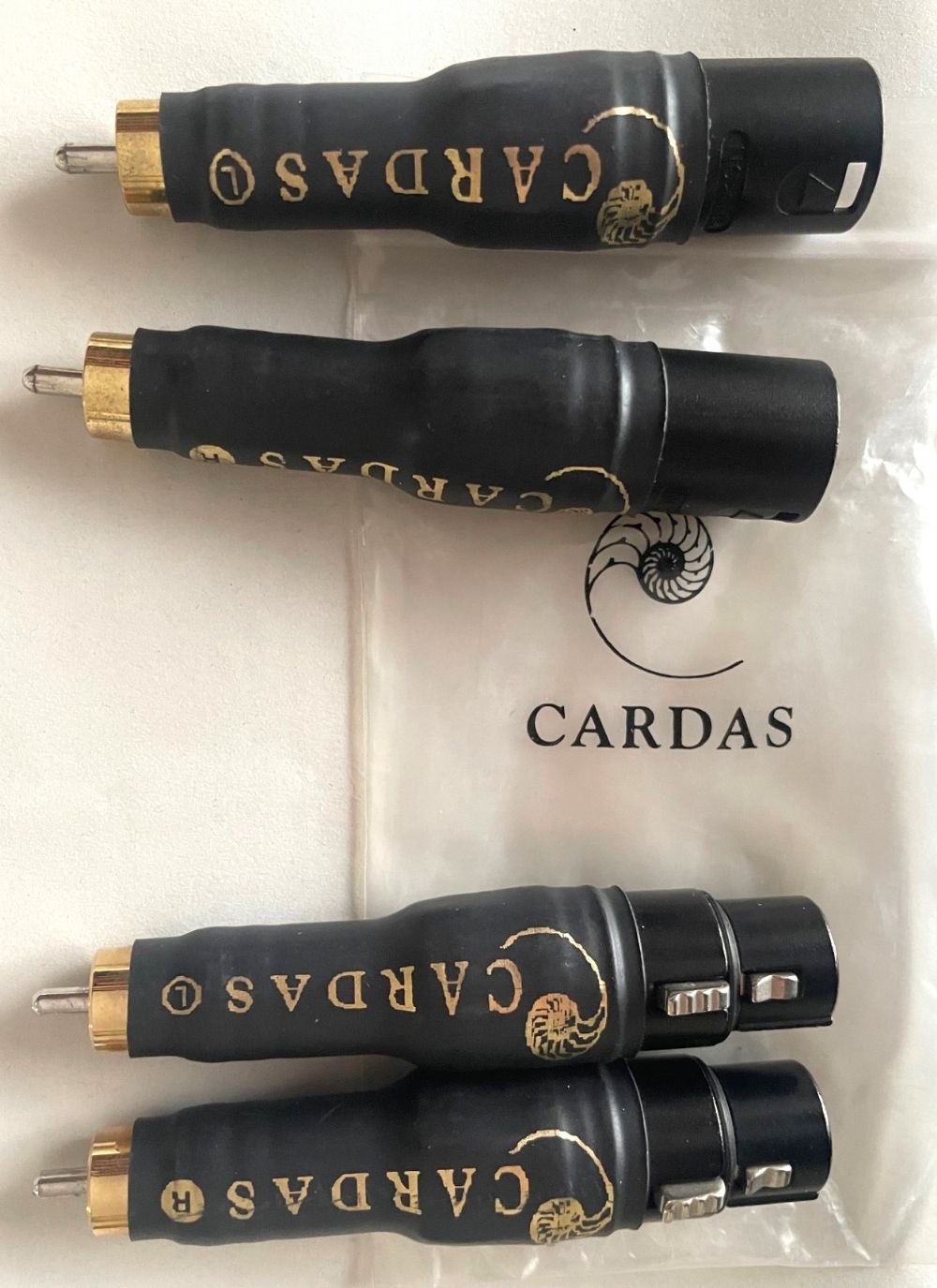 In vendita due coppie di adattatori Cardas Audio in ottime condizioni nella loro busta originale, creati per utilizzare una coppia di cavi di segnale bilanciati in elettroniche con ingressi e uscite solo rca, oppure per trasformare un cavo da bilanciato a sbilanciato su un solo lato con elettroniche a ingressi misti rca e xlr. Due adattatori sono male xlr verso male rca, gli altri due female xlr verso male rca. Ritiro possibile presso mia abitazione MI zona NE, spedisco con pacchetto sicuro e anonimo, grazie