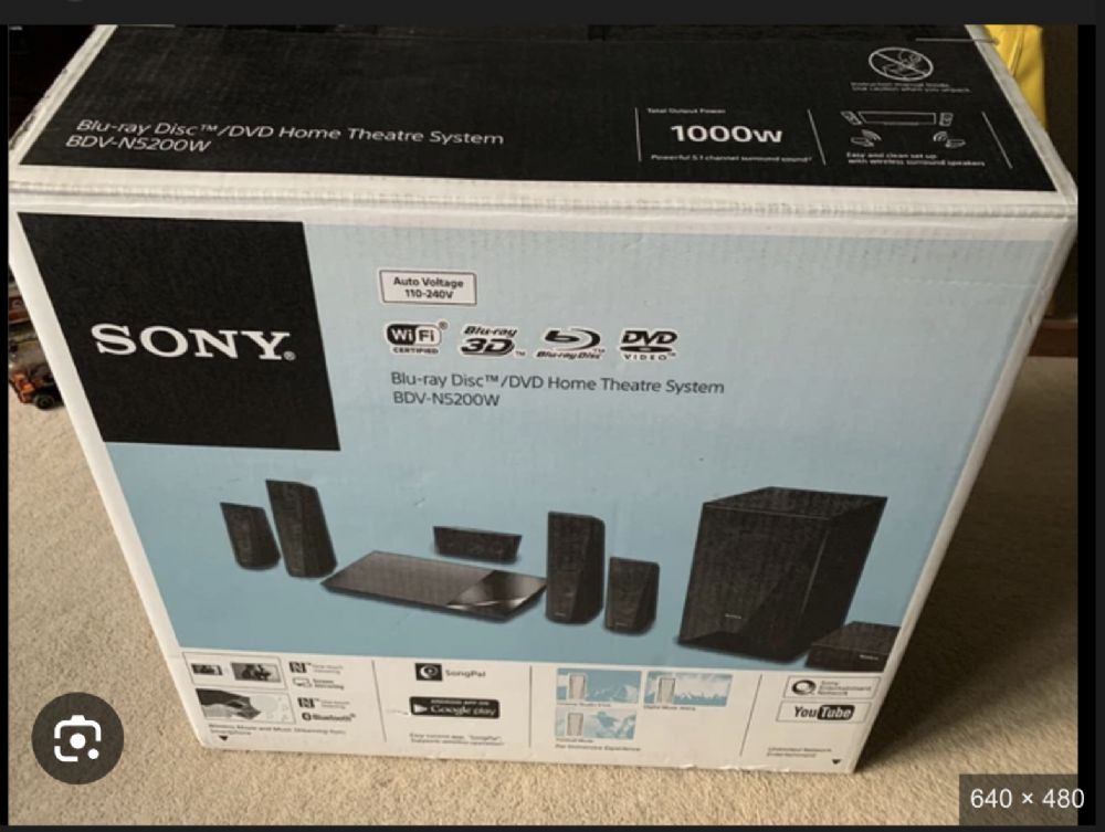 Sistema per 5,1 Sony home theatre dalle prestazioni eccezionali. Con il suo telecomando, e supporti muro marca Meliconi.In rete ci sono recensioni positive di questo sistema. Dove vanno collegati il canali frontali è centrale e sub vanno all’ amplificatore che è anche blu Ray. Radio ecc.ecc. I canali posteriori vanno con la sua centralina wireless molto furbo come sistema per non passare cavi, così non ci sono assolutamente complicazioni di cavi tra i piedi. Per prestazioni e caratteristiche tecniche potete vedere in rete. L’imballo non c’è.Perfettamente funzionante. Preferirei non spedire x farvi vedere che è un sistema home cinema soddisfacente.Prestazionale! Il prezzo non trattabile è già ottimo costava circa € 600,00